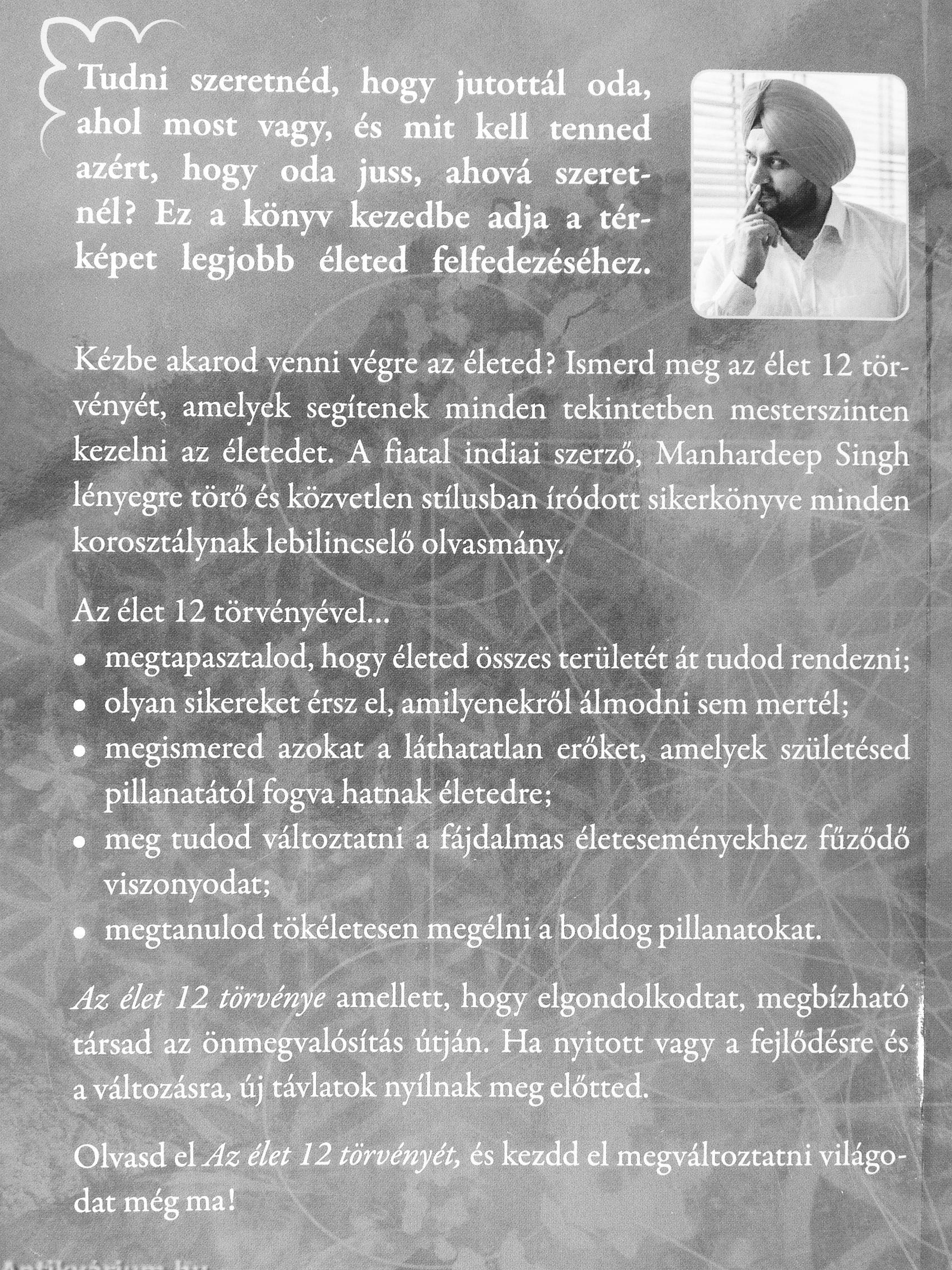 Kézbe akarod venni végre az életed? Ismerd meg az élet 12 törvényét, amelyek segítenek minden tekintetben mesterszinten kezelni az életedet. A fiatal indiai szerző, Manhardeep Singh lényegre törő és közvetlen stílusban íródott sikerkönyve minden korosztálynak lebilincselő olvasmány.
