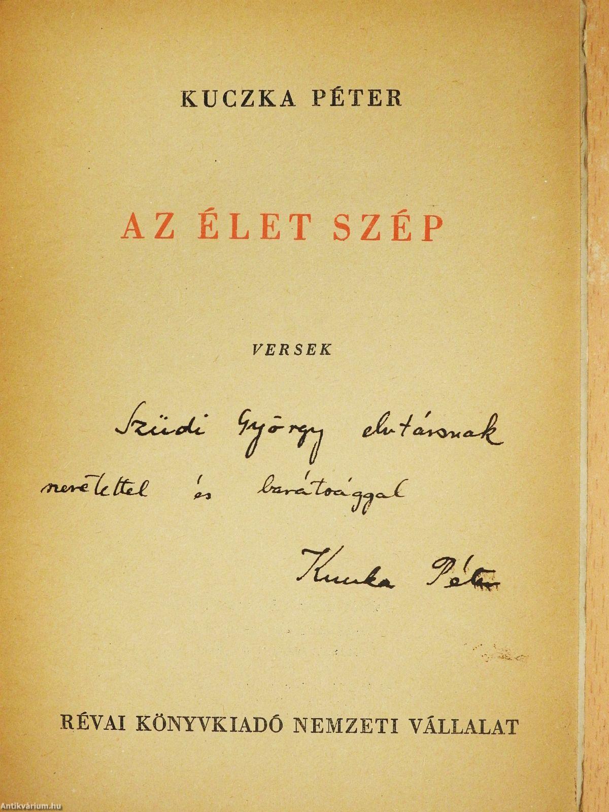 | Megjegyzés: | Kuczka Péter szerző által dedikált példány. Révai-nyomda N. V. nyomása, Budapest. |