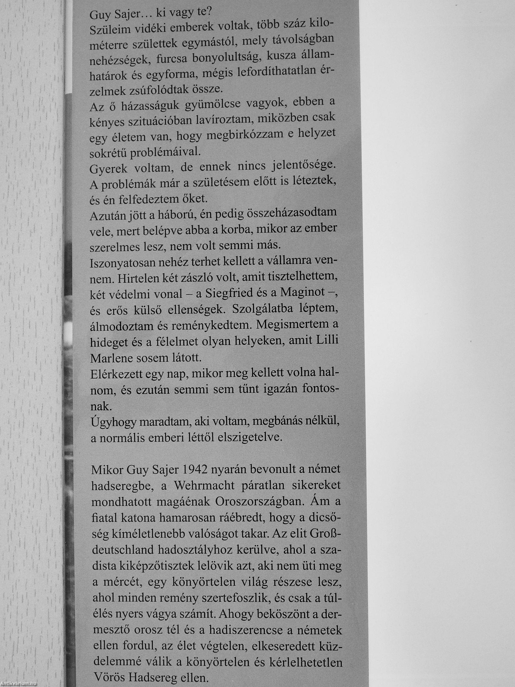 Mikor Guy Sajer 1942 nyarán bevonuh a német hadseregbe, a Wehrmacht páratlan sikereket mondhatott magáénak Oroszországban. Ám a fiatal katona hamarosan ráébredt, hogy a dicsőség kiméletlenebb valóságot takar. Az elit GroB-deutschland hadosztályhoz kerülve, ahol a szadista kiképzőtisztek lelövik azt, aki nem üti meg a mércét, egy könyörtelen világ részese lesz, ahol minden remény szertefoszlik, és csak a túlélés nyers vágya számít. Ahogy beköszönt a dermesztő orosz tél és a hadiszerencse a németek ellen fordul, az élet végtelen, elkeseredett küzdelemmé válik a könyörtelen és kérlelhetetlen Vörös Hadsereg ellen.