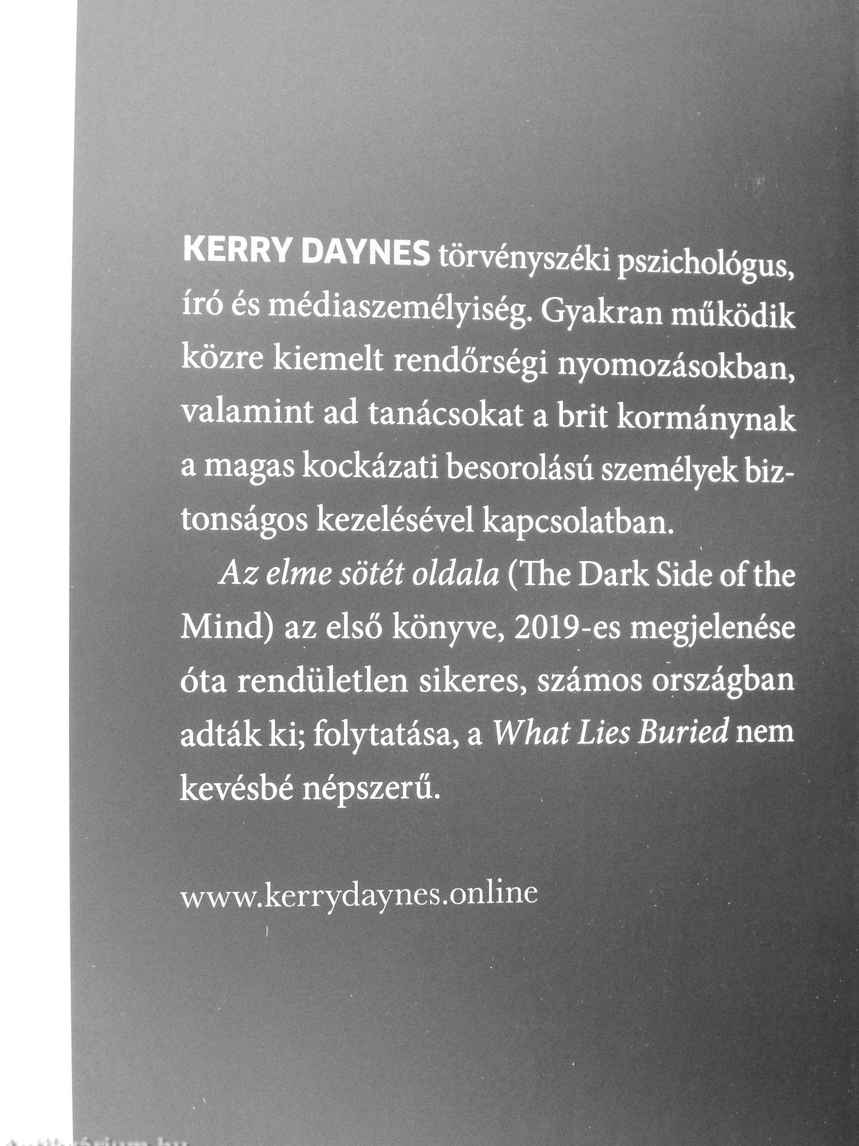KERRY DAYNES törvényszéki pszichológus, író és médiaszemélyiség. Gyakran működik közre kiemelt rendőrségi nyomozásokban, valamint ad tanácsokat a brit kormánynak a magas kockázati besorolású személyek biztonságos kezelésével kapcsolatban.