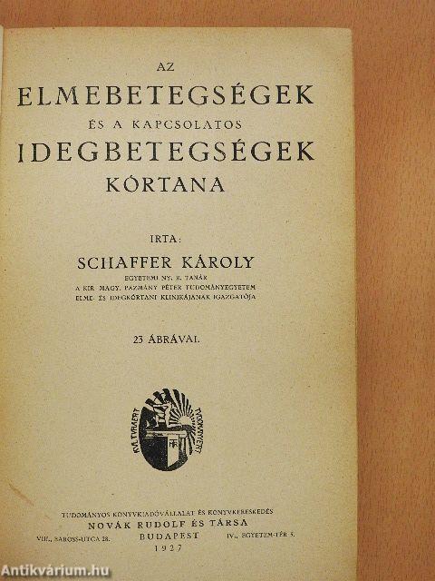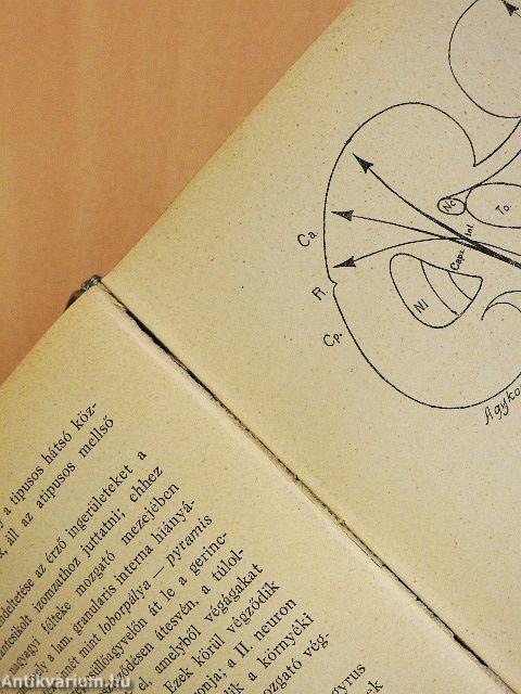 Megjegyzés: 23 fekete-fehér ábrával illusztrálva. Írta Schaffer Károly egyetemi ny. r. tanár, a Kir. Magy. Pázmány Péter Tudományegyetem Elme- és Idegkórtani Klinikájának igazgatója. Nyomtatta a Fővárosi Nyomda Rt.