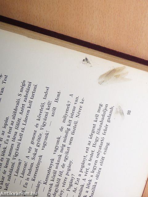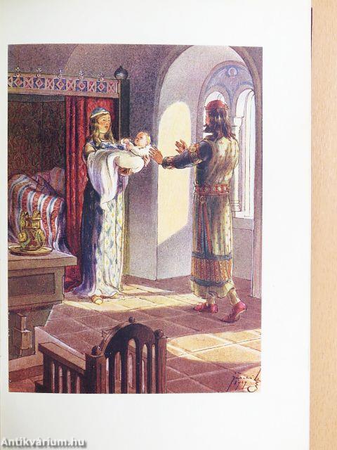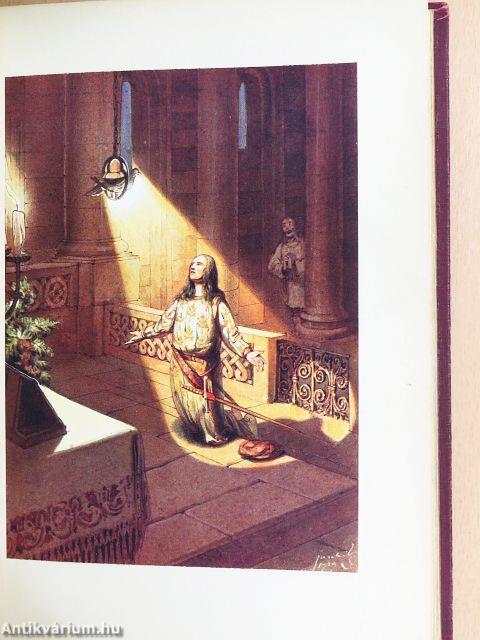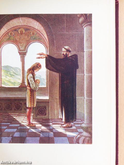 | Megjegyzés: | Első kiadás! Dúsan aranyozott kiadói egészvászon-kötésben. A kötés Gottermayer Nándor műhelyében készült. Színes képekkel (hártyapapír mögött), könyvdíszekkel. A képeket és könyvdíszítéseket Jaschik Álmos rajzolta. Serédi Jusztinián dr. Magyarország bíboros hercegprímása bevezető soraival. A nyomtatás Hornyánszky V. R.-T. magy. kir. udv. könyvnyomdájában, Budapesten készült. |