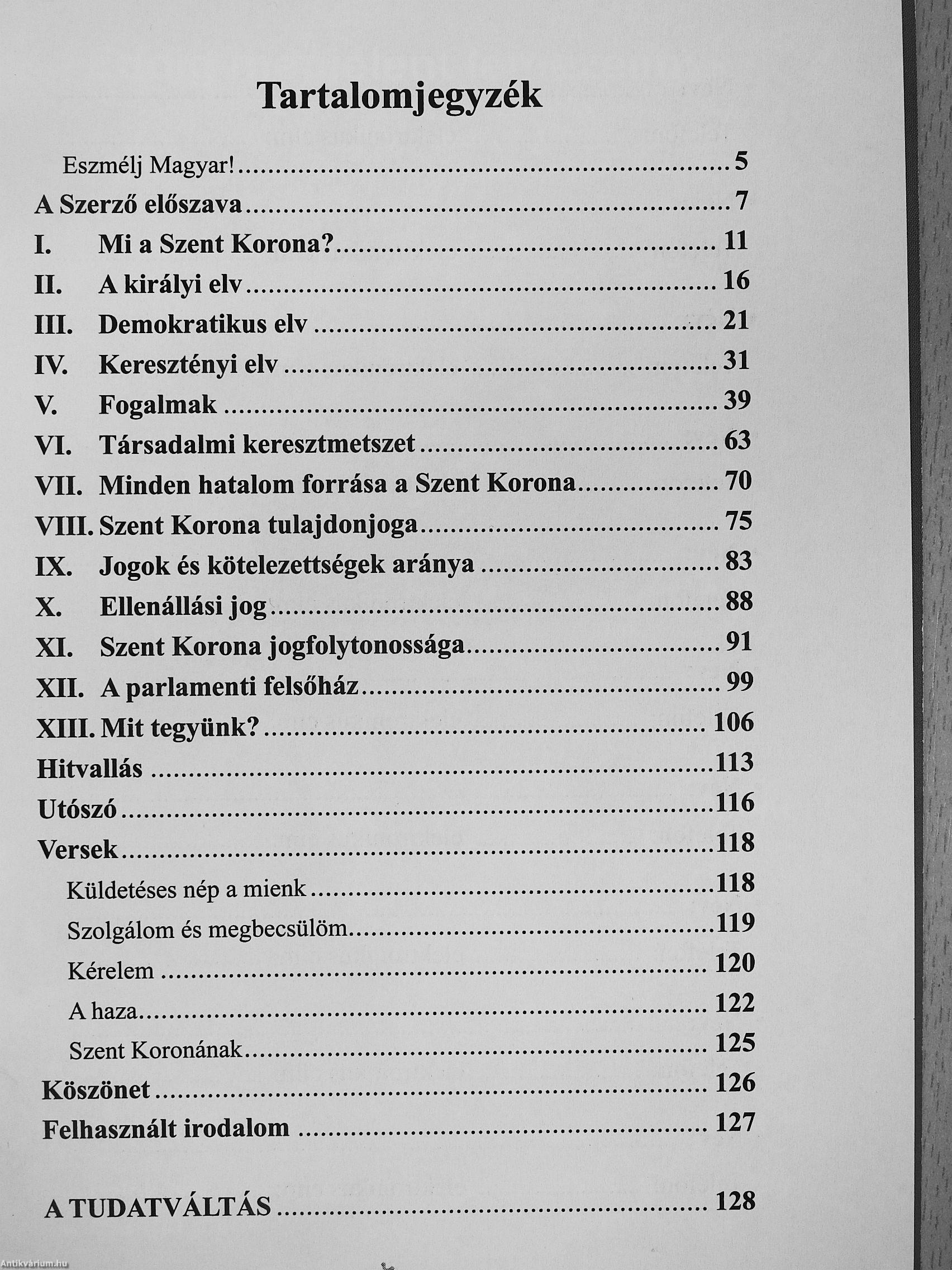 Szeretem hallgatni Vesztergám Miklós tárogatójátékát. Valódi küldetést teljesít vele, népnevelést a népdalokkal és népénekekkel, hazaszeretet felébresztését hazafias művekkel és magyarázatukkal. Amikor felkért, hogy ezt az írását nézzem át és véleményezzem, bizony nagyon meglepődtem. Nem számítottam arra, hogy írni akar. Elolvasva azonban megörültem, mert valóban nagy szükség van az érthető, világos megfogalmazásra. Oly keveset tud a közönség Szent Koronánkról, s még kevesebbet a történelmi alkötmányról. Szükség van tehát minden szóra. Ez a könyv alkalmas is a figyelem felkeltésére. Aki elolvassa, megismerkedik az alapokkal, s ha tovább akarna haladni, elkezdhet hosszabb, részletesebb művekkel foglalkozni. Bizonyára sokan lesznek így, mert világos, érthető stílusa, érdekes, de mégis pontos megfogalmazásai vonzóak, továbblépésre ösztökélnek. Érezhető, hogy nem a szaktudós szól hozzánk, hanem hazáját szerető és féltő művész, aki írásával is gyógyítani szeretne. Igen, gyógyítani a...