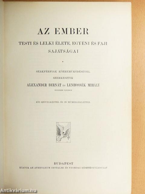 Megjegyzés: 470 fekete-fehér szövegképpel és 39 színes műmelléklettel illusztrálva, melyek közül több kihajtható. Szakférfiak közreműködésével szerkesztik Alexander Bernát és Lenhossék Mihály egyetemi tanárok.