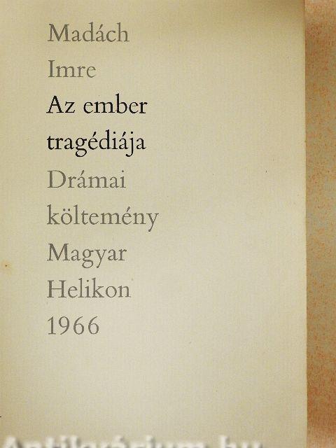 A magyar irodalom legnagyobb drámai költeménye, amely az emberiség létének értelmét, célját kutatja, éppúgy, mint nagy rokonai, Goethe Faustja vagy Byron Manfrédja, több mint száz éve jelent meg először. Újabb kiadásai, színpadi előadási azóta is az élő nagy művek erejével hatnak: nemcsak a tiszteletet követelik meg, hanem az elemzést, a birkózást a mű gondolataival, szerkezetével, mondanivalójával - olvasótól, tanulmányírótól, rendezőtől és rajzolótól egyaránt. Ezért vizsgálata, boncolta ennyi tanulmány, ez szikráztatta ki a vitákat, ez adott lehetőséget a rendezőknek, hogy különböző oldalakról, más és más felfogásban közelítsék meg - mondanivalójának lényegét keresve. Az új kiadást Kass János rézkarcai díszítik.