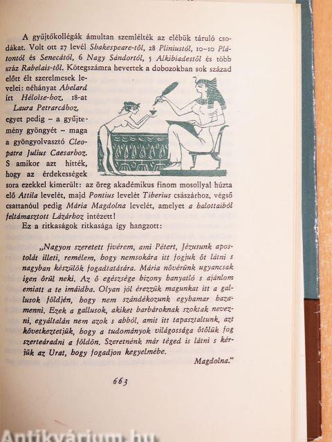 | Az elvetett pénzmag - A nyárson sült beszélő fülemüle - Cleopatra gyöngye - A fahéjjal megrakott kandalló és az ötvenezer talléros alágyújtó - A gyémántporzó és a zöldborsóval hízlalt tehén - Az elkártyázott gyorsvonat - Az elárverezett világbirodalom - Pénzen vett halhatatlanság -Harpagonék pénzeszsákja | 155 |