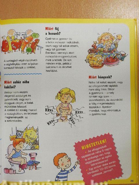 Miért van egyeseknek sima haja, másoknak meg göndör? Miért pisilünk be néha éjszaka? Miért nem egyforma színű mindenkinek a bőre? Hogy lehet, hogy a táncosok nem szédülnek bele a sok forgásba? Miért folyik az orrunk, ha megfázunk? Ilyen és még közel 500 hasonló kérdésre nyújt választ ez a könyv, mely meglepőbbnél meglepőbb információival valódi kincsesbánya lehet kicsiknek és nagyoknak egyaránt.