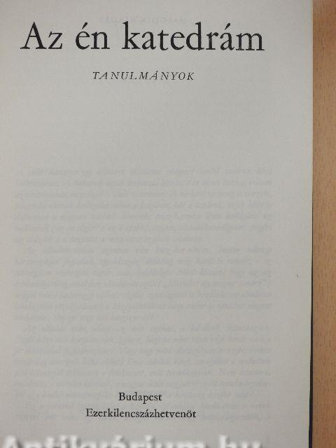 Ez a javaslat szöget ütött a fejembe. Munkáim kiadásában a tervek szerint lett volna egy kötet, amelyet három nagy tanulmányomnak, a Berzsenyinek, Széchenyinek, Kemény Zsigmondnak szántunk: nem lehetne-e ezek köré a reformáció koráról szóló kis esszéimtől a Tanú-beli A Nyugat elődei-ig, történeti rendben, valamennyi irodalomtörténeti jellegű írásom odacsoportosítani? Az ötletet a sorozat szerkesztői előtt is felvetettem. Kiadói szempontból jónak tartották, s néhány perc sem telt bele, a sajkodi diófa alatt, ahol a munka folyt, a könyvcím is kipattant: - Az én katedrám - vágtam ki, bár később kételyem támadt a címmel kapcsolatban.