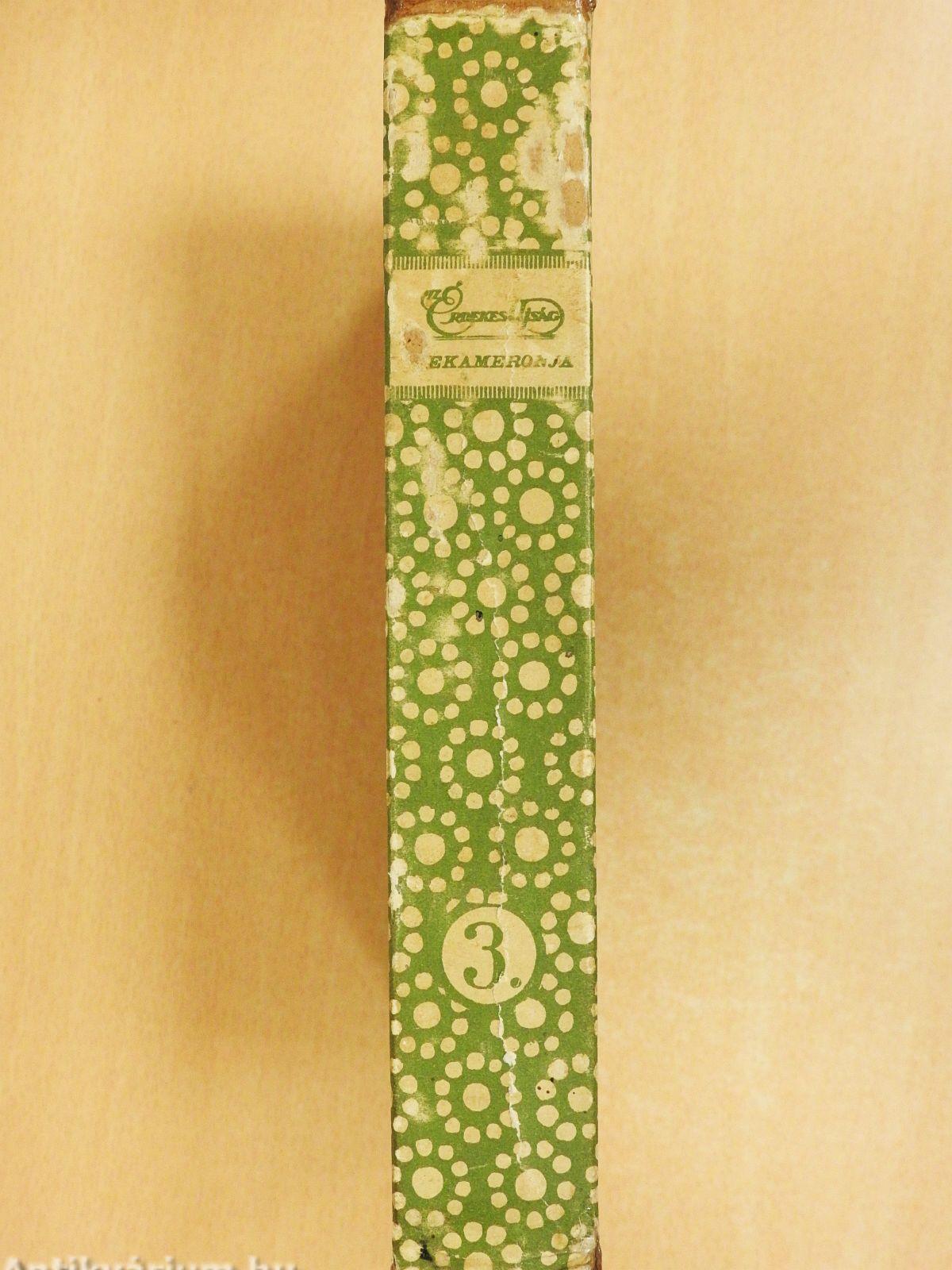 | Kötés típusa: | Aranyozott gerincű kiadói vászonkötés |