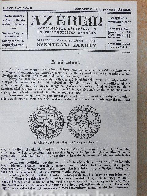 | "Az érem" 1922-1942. évfolyamainak tartalomjegyzéke | |