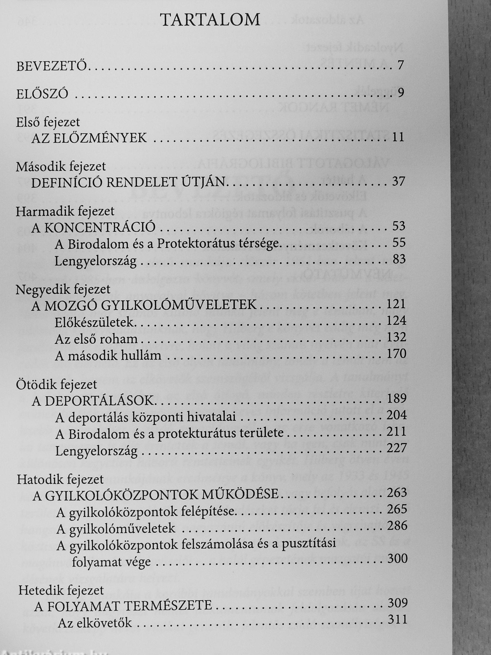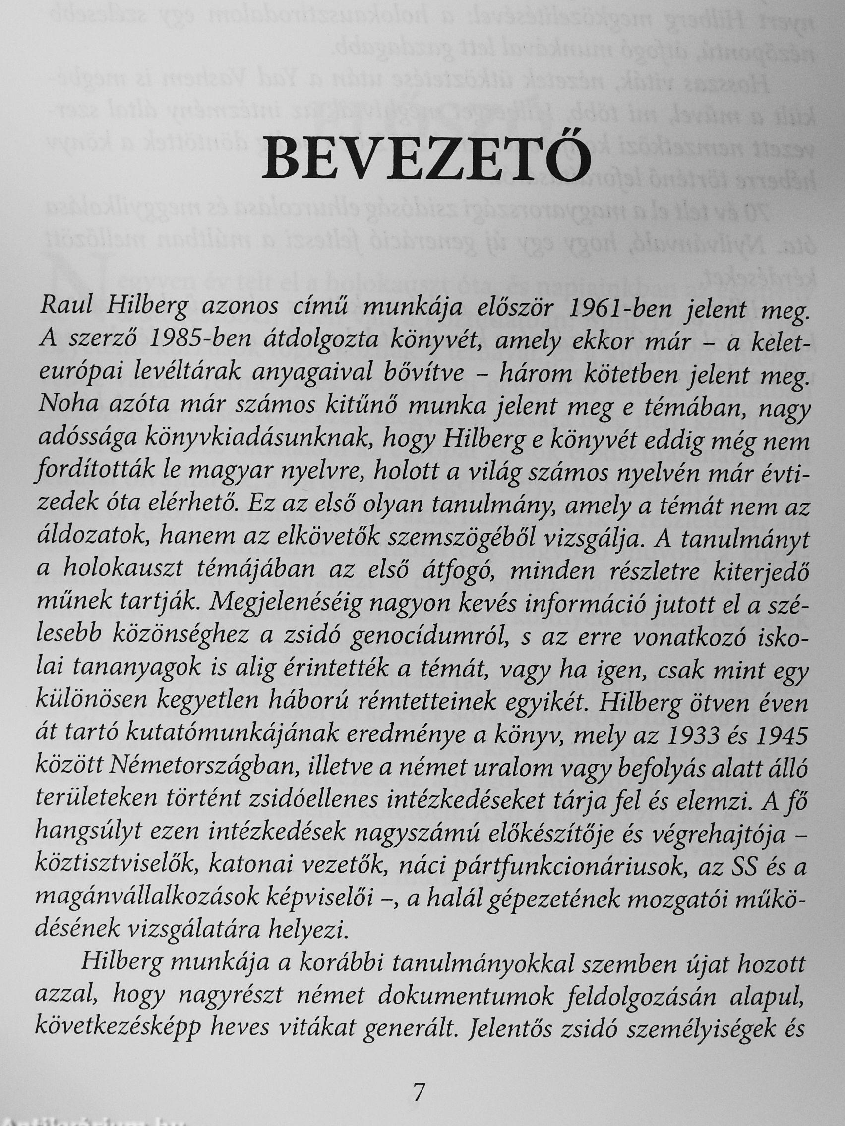 Ez a kön}^^ - Hilberg azonos című, háromkötetes tanulmányának kifejezetten fiatalok számára készült átdolgozása - e kérdések megválaszolására vállalkozik. Az európai zsidók elpusztításának rövid leírása a történet lényegére helyezi a hangsúlyt. Olyan olvasók számára készült, akik nem ismerik a részleteket, mégsem egy áttekintés csupán. Világos, közérthető részek alkotnak összefüggő egészet benne - anyagát a holokauszt témáját oktató tanároknak, illetve e kurzusok hallgatóinak tapasztalatai alapján állította össze a szerző.