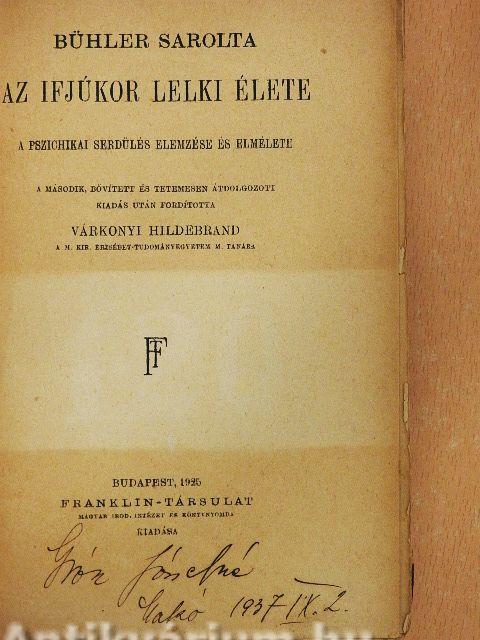 | Az ifjúkor erkölcsisége, vallása és világnézete | 190 |