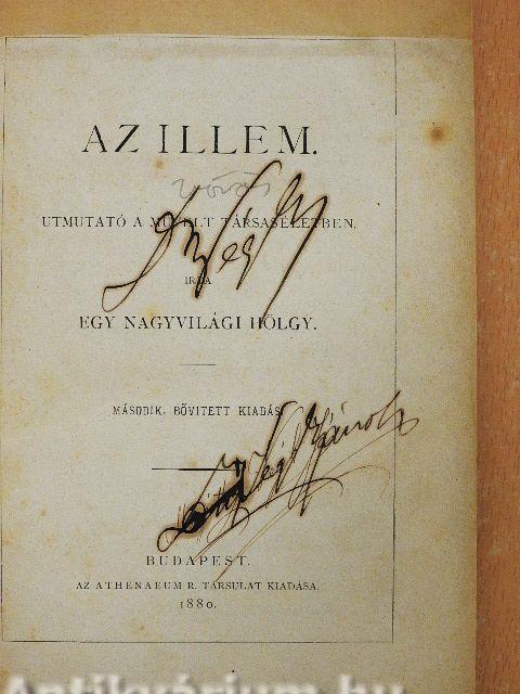 | Megjegyzés: | Második, bővített kiadás. Írta Egy Nagyvilági Hölgy. Nyomtatta az Athenaeum r. társ. könyvnyomdája, Budapest. |