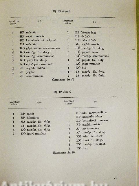 | A cselekvéses hányados (PQ) táblázatai | 212 |