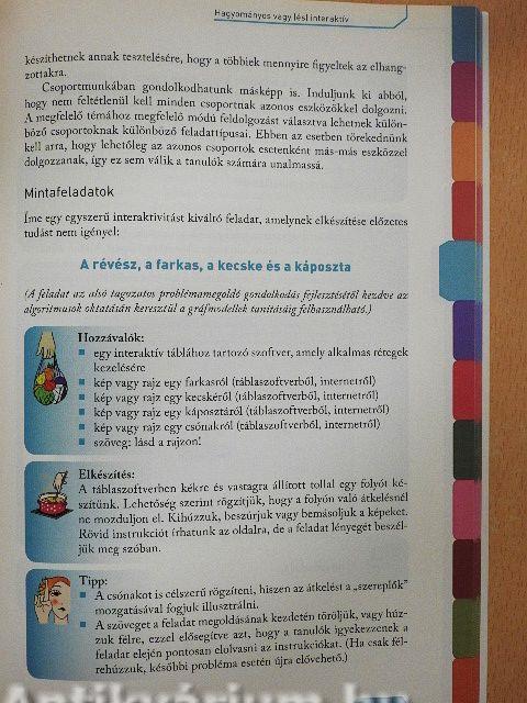 A könyv módszertani leírásoktól kezdve, tanfolyami hallgatók, pedagógusok, diákok véleményein át, az elmélettel, a kompetenciákkal is összefüggésbe hozza az interaktív táblát, segítve a pedagógusoknak ezt az eszközt is beilleszteni saját meglévő eszköztárukba. A könyv gyakorlatiasságát, használhatóságát segítik a CD mellékleten található mintapéldák is.