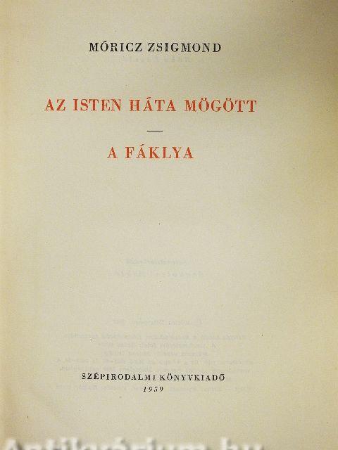 Móricz Zsigmond két remek regényét nyújtjuk át e kötetben az olvasónak. Mindkettő a Nyugat hasábjain jelent meg először; 1911-ben Az Isten háta mögött, 1918-ban A fáklya. Mindkét írást viharosan fogadta a közvélemény és a korabeli sajtó; heves indulatokat lobbantottak fel. Az alföldi kisvárosban - az Isten háta mögött - kísérletezik a nagy szerelemmel a bátor és csinos kis tanítóné, de komikus-szomorú kudarcba fulladnak vágyai. A középpontban örvénylő, fülledt, forró levegőjű vívódás körül elevenedik meg aztán a kisváros egész élete a maga unalmával, élettelen kicsinyességével, gonosz pletykáival... a szellem minden magasabb, nemesebb vágyát elfojtó sivárságával - írta támadóival szembeszállva Schöpflin Aladár. Az Isten háta mögött nemcsak remekmű, de szeretni is lehet minden figuráját, a szánalmasan begyepesedett, bortól, semmittevéstől elbambultakat is. Fülledt unalomról, porbafúlt életről kevesen írtak annyira üdén, ragyogó frissen: igazat, mint azt Móricz tette ebben a regényben.