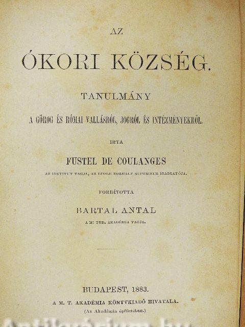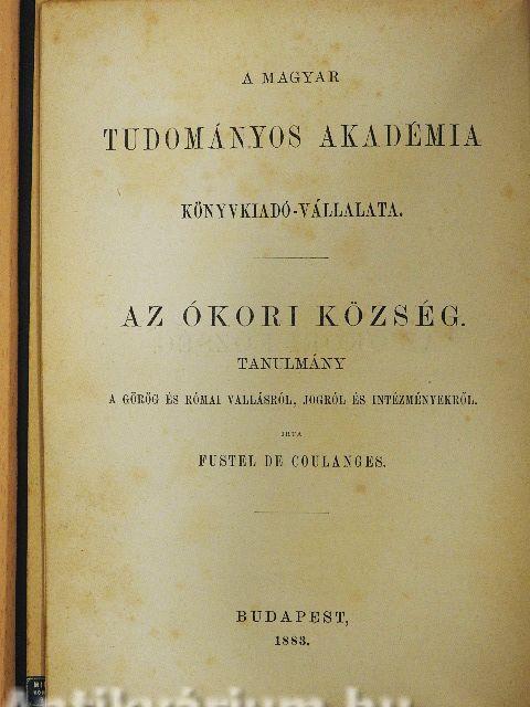 | Bevezetés. - Mennyiben szükséges az ókoriak ősrégi hitelének a tanulmányozása, hogy intézményeiket megérthessük | 1 |