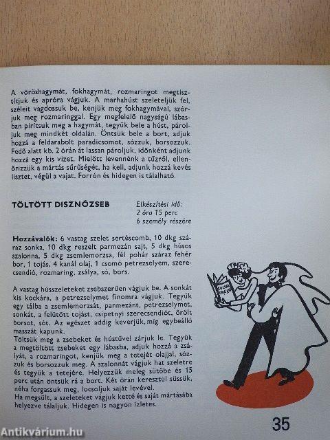 Önöknek írtam ezt a receptfüzetet. Régi kötelezettségemnek teszek eleget, amikor szeretném megismertetni a magyar háziasszonyokat az olasz konyha különleges ízeivel. Már a régi rómaiak is nagy kedvelői voltak a különlegesen finom ízeknek, nagy művelői az ínyesmesterségnek. A mai olasz konyha is ezekre az ősi hagyományokra épül"