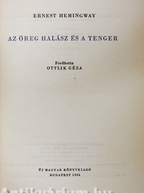 Az öreg halászt hónapokig balszerencse kíséri. Ismét tengerre indul, és nagy küzdelem árán különleges, óriási halat fog. Hazafelé irányítja csónakját a zsákmánnyal, de cápák támadják meg, és a szerencsés ritka fogásból csak csontváz marad. Ez a történet. Ha akarjuk, jelképesen is érthetjük: az emberi kitartás, állhatatosság küzd a természet erőivel. A küzdelemben időlegesen vereséget szenved az ember, a végső győzelem mégis az övé. A tökéletes, kristálytiszta stílus s az eszmei mondanivaló remekművé avatja Hemingway-nek ezt a könyvét, melyet 1954-ben az irodalmi Nobel-díjjal tüntettek ki.