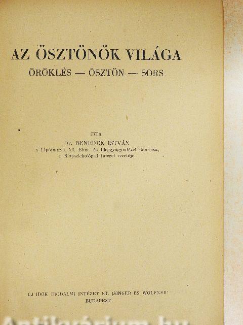 | Megjegyzés: | Fekete-fehér ábrákkal, fényképekkel illusztrálva. Nyomtatta Hungária Hírlapnyomda Rt., Budapest. Írta Dr. Benedek István a Lipótmezei Áll. Elme- és Ideggyógyintézet főorvosa, a Biopszichológiai Intézet vezetője. |