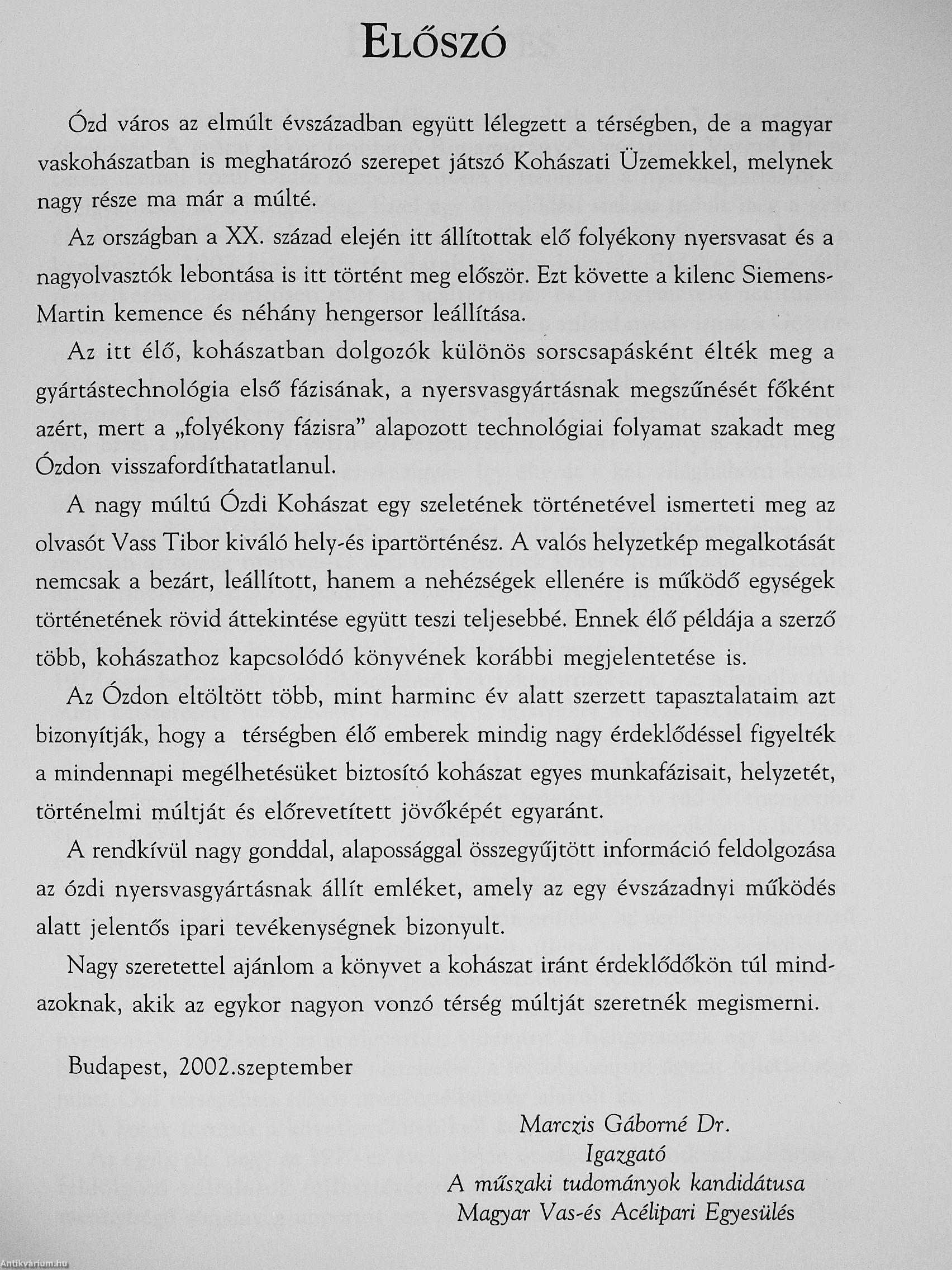 Az ózdi nyersvasgyártás története (dedikált példány)