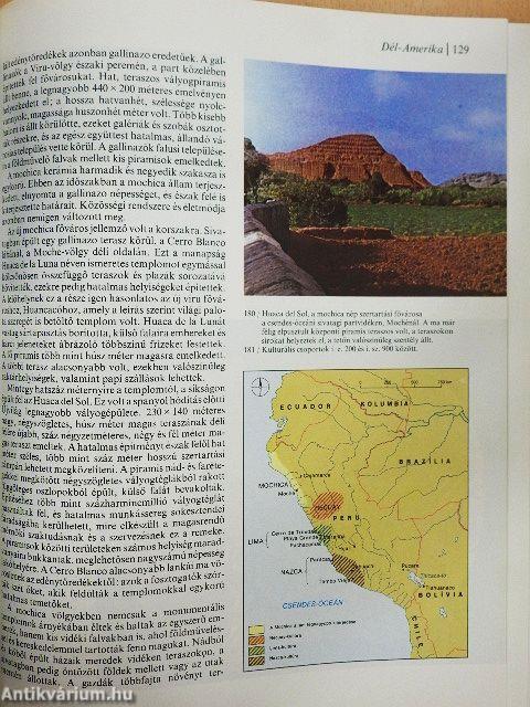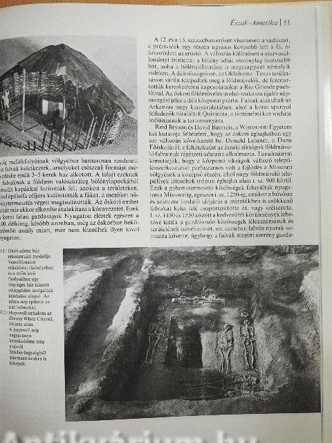 Kötetünk szerzői Észak-, Közép- és Dél-Amerika történelmét, a lenyűgöző indián kultúrák kialakulását követik nyomon a régészeti feltárások eredményeinek segítségével az i. e. 26 000-től kezdve a spanyol hódításig. Részletekbe menően foglalkoznak a vadászó-gyűjtögető hordák életével, a földművelés kialakulásával csakúgy, mint például a rejtélyes módon elnéptelenedett, Chaco-kanyonbeli, egykor társadalmi és szertartási központul szolgált hatalmas pueblotelepüléssel. Nem kevésbé alapos az az ismertetés, amely az i. sz. 200 és 800 között virágzó városállam, Teotihuacán kultúrájáról, a tolték-maja civilizáció fénykoráról, a Tollas Kígyó által alapított Chichén Itzáról vagy a híres azték fővárosról, a "szívvel és vérrel táplálkozó" Huitzlipochtli isten uralta Tenochtitlánról szól. Ám éppígy szó esik a könyvben a csodálatos Inka Birodalomról, a 2700 méter magasan, szemkápráztató természeti környezetben fekvő Machu Picchuról: röviden: azokról a magasan szervezett ősi kultúrákról, amelyeket az európai hódítók évtizedek alatt romba döntöttek. Külön fejezet foglalkozik az Újvilágról tudósító első híradásokkal, egyházi krónikások és tudós utazók leírásaival, a modern régészeti kutatómódszerek kialakulásával, többek között a légi fényképezéssel, amely nélkül számos, őserdők mélyén rejtőző, fontos emlék mind a mai napig feltáratlan maradt volna.