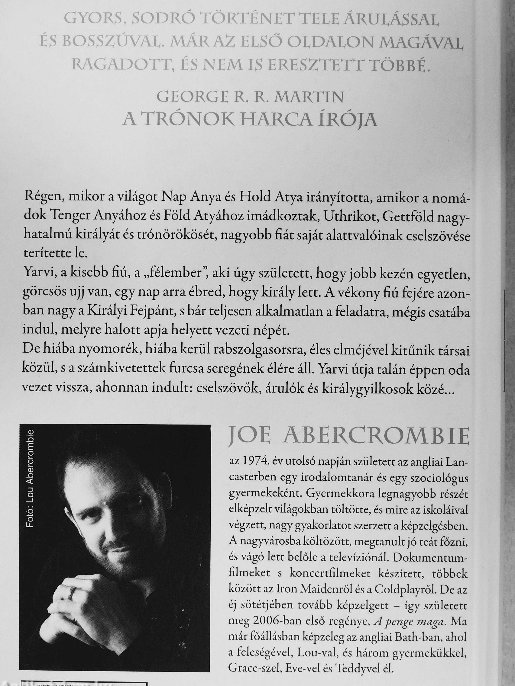 Joe Abercrombie műveinek az Antikvarium.hu-n kapható vagy előjegyezhető listáját itt tekintheti meg: Joe Abercrombie könyvek, művek