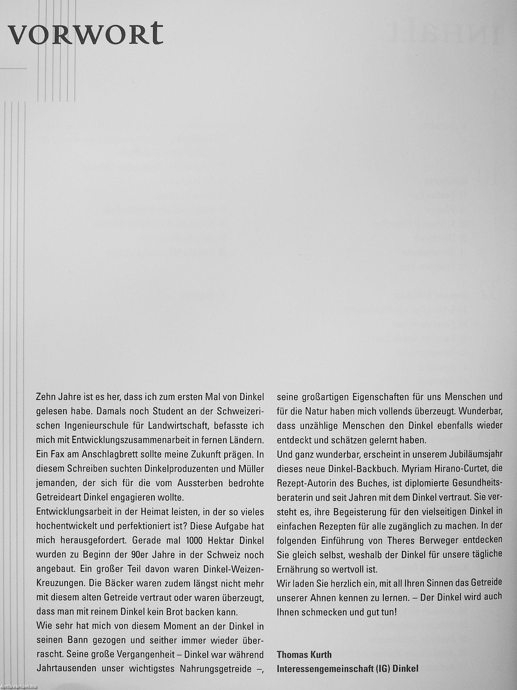 ^ Der Dinkel schont die Umwelt (Ökologie-V Getreide) und fördert die Gesundheit (Fitmacher, Schlankmacher). Er ist unverzichtbar für Weizen-Allergiker und Basisernährung für Gesunde und Kranke. Der Dinkel ist in der Backstube ein Alleskönner, so vielseitig einsetzbar wie I Weizen, aber mit besserem Back-â résultat. Dank dem hohen Glutengehalt 1 und der guten Quellfähigkeit wird ^ jedes Gebäck luftig, leicht und bekömm-lieh. Mit der bunten Palette von Brot und Brötchen, Aperitifgebäck, pikanten und süßen Mahlzeiten, Kuchen und Torten sowie Kleingebäck wird der Dinkel seinen festen Platz in der Backstube k erobern.