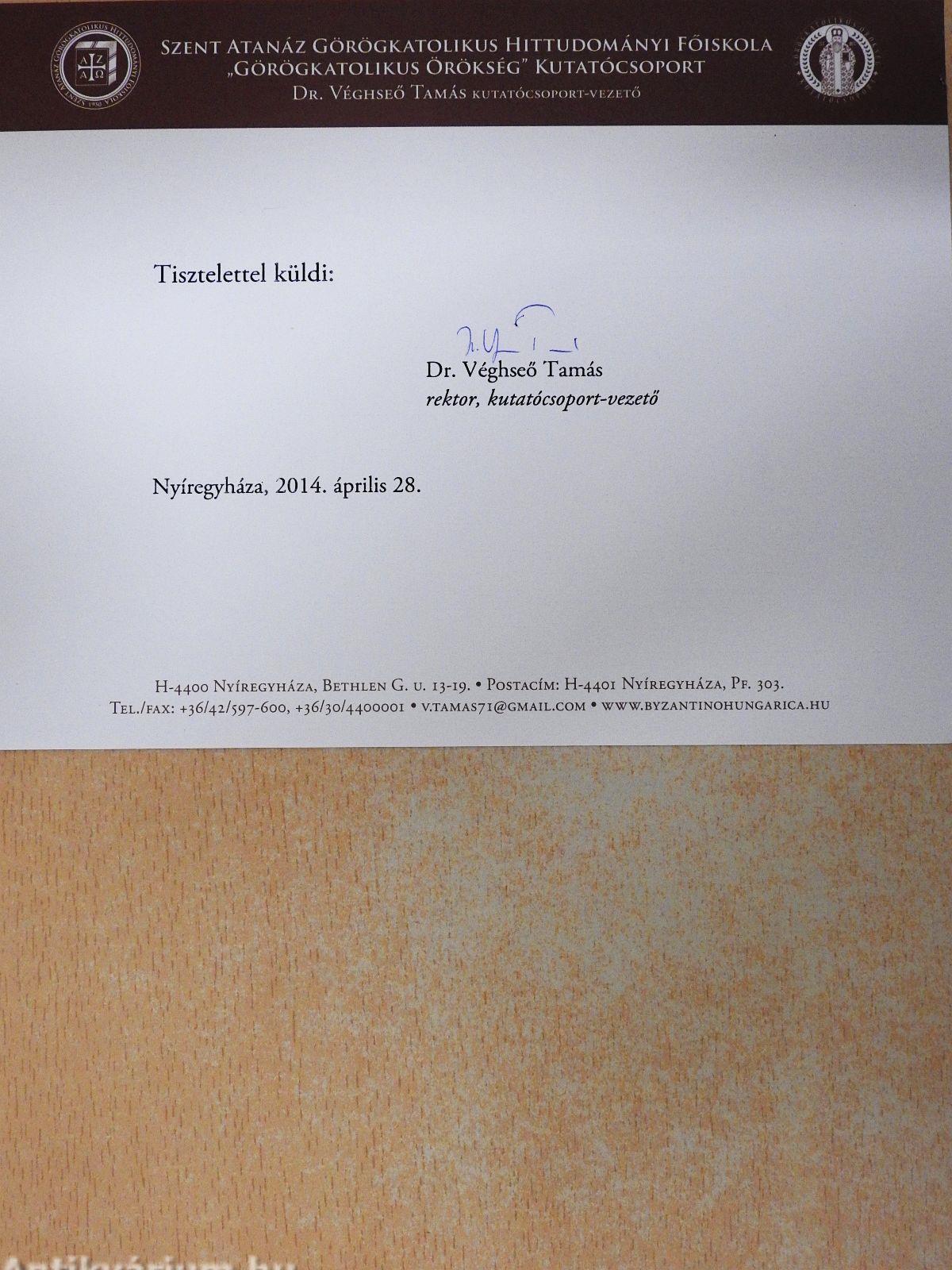 Kiadó: Szent Atanáz Görög Katolikus Hittudományi Főiskola