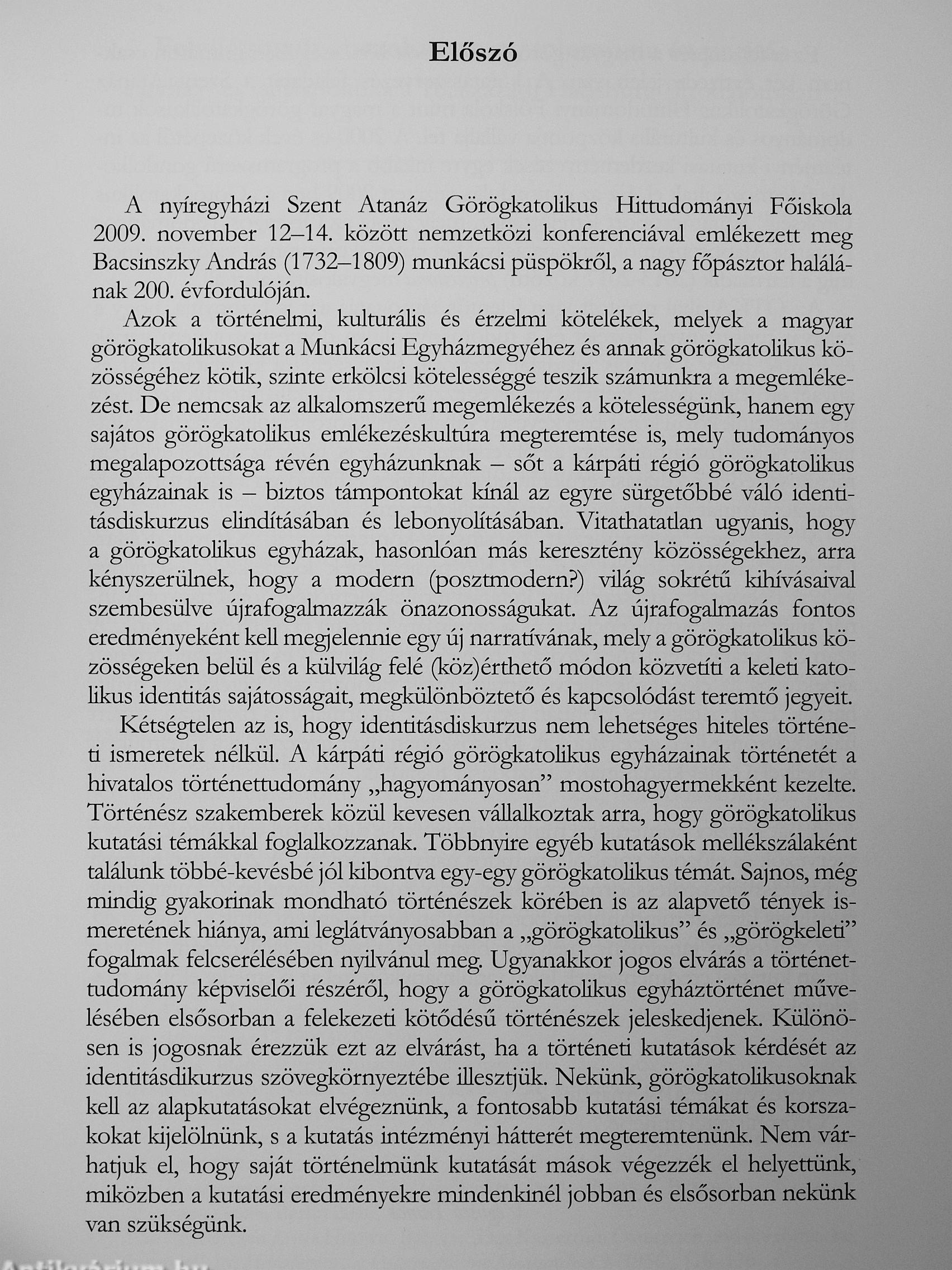 A Bacsinszky András munkácsi püspök halálának 200. évfordulóján rendezett konferencia tanulmányai/Nyíregyháza, 2009. november 12-14.