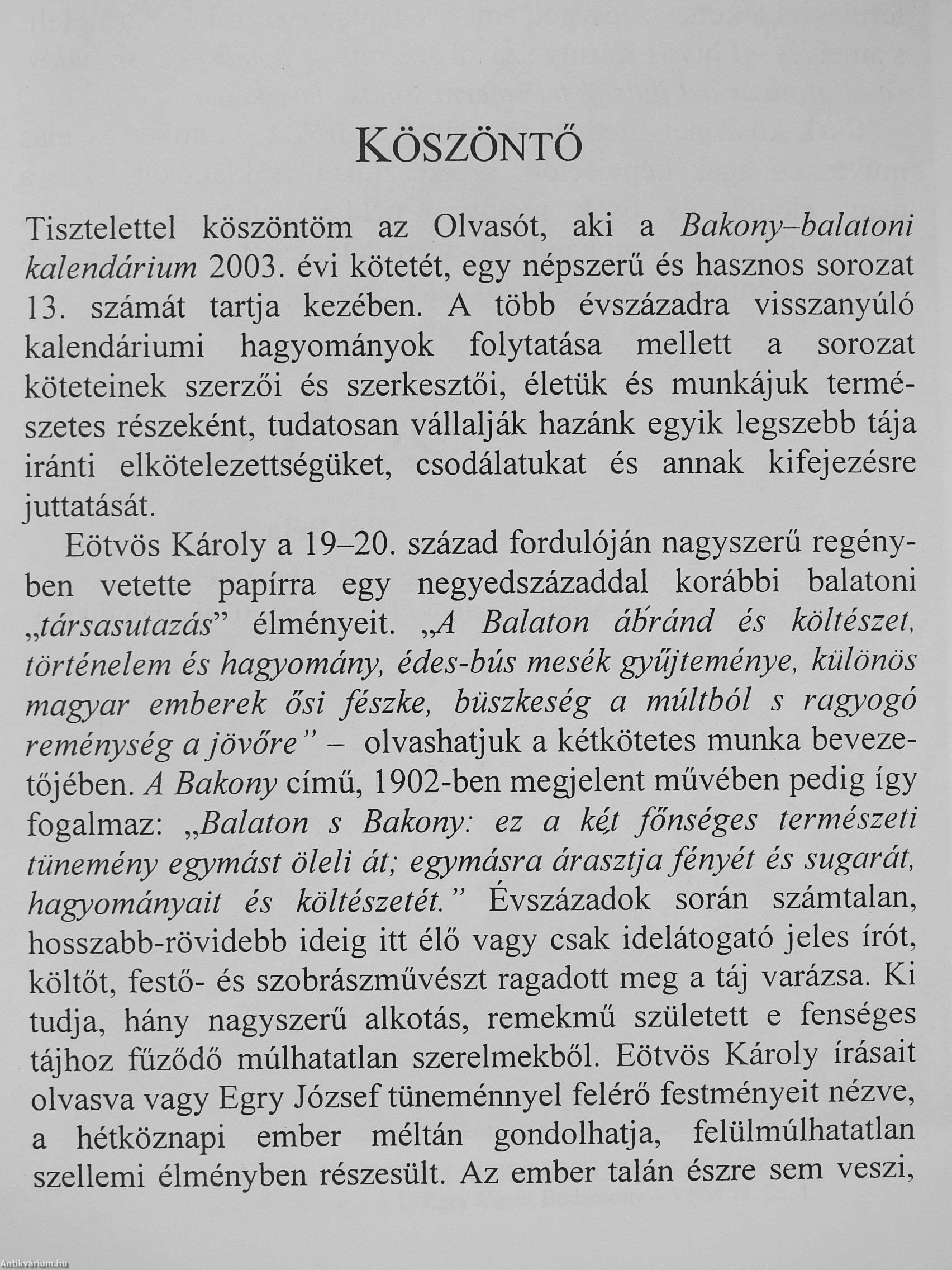 | Sorozatcím: | Bakony-Balatoni Kalendárium |