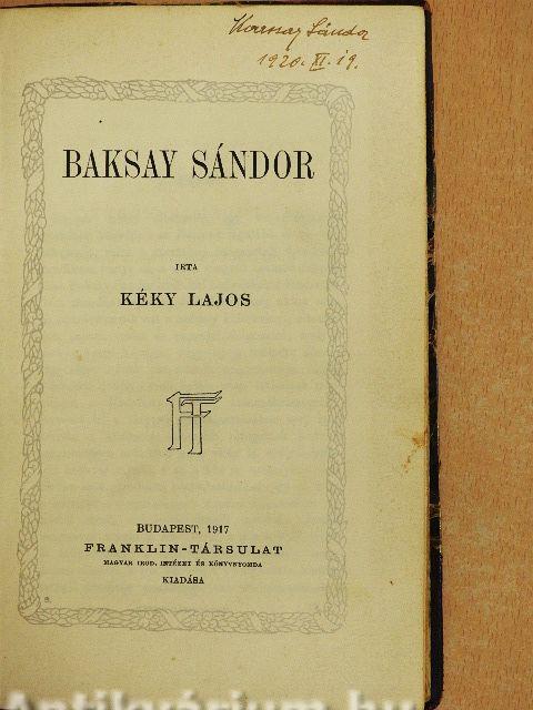Egypár kötet elbeszélés, egy terjedelmesebb történeti körkép s az Iliasnak legalább is annyira kifogásolt, mint a mennyire magasztalt fordítása: mindössze ennyi az, a mi a magyar olvasóközönség előtt Baksay Sándor irodalmi hagyatékáúl ismeretes. Nem mondható gazdag örökségnek még akkor sem, ha hozzáveszszük azt a néhány költeményt, elbeszélést, rajzot, tréfát és néprajzi dolgozatot, melyek csak egy-egy folyóirat vagy újság szűkebb közönsége előtt voltak ismeretesek megjelenésük idején s kötetbe gyűjtve csak halála után láthattak napvilágot a Kisfaludy-Társaság áldozatkészségéből. Keveset írt s tárgyai megválasztásában sem igen kereste a közönség szélesebb rétegeinek kedvét; meglehetősen szűkkörű az a világ is, melyet különös kedvvel rajzolt, s az a kör is, a melyhez elsősorban szólt. Irodalmi köztudatunkban úgy él, mint a kálvinista magyarságnak minden felekezeties vonástól ment, de művészetének minden jellemző vonásával mégis e felekezethez kapcsolódó írója. Vissza