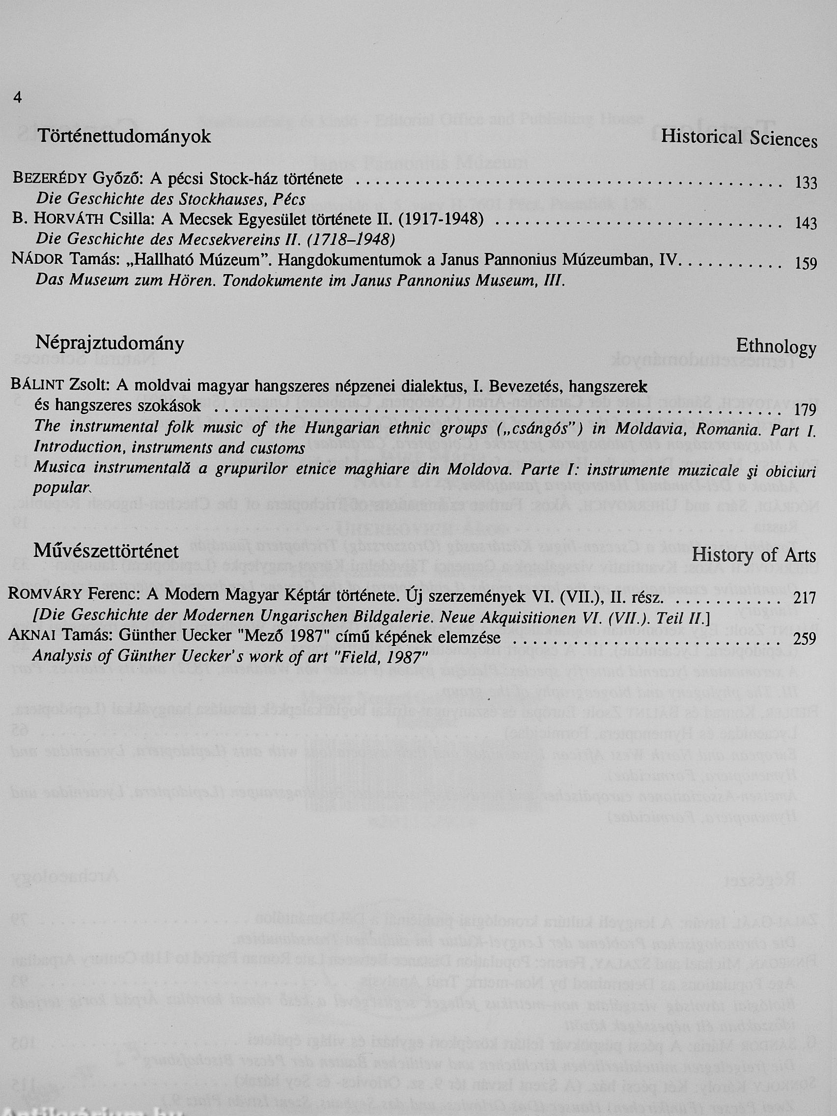 Megjegyzés: Fekete-fehér fotókkal, illusztrációkkal. Megjelent 700 példányban. Angol, német és román nyelvű összefoglalókkal. További szerzők a tartalomban.