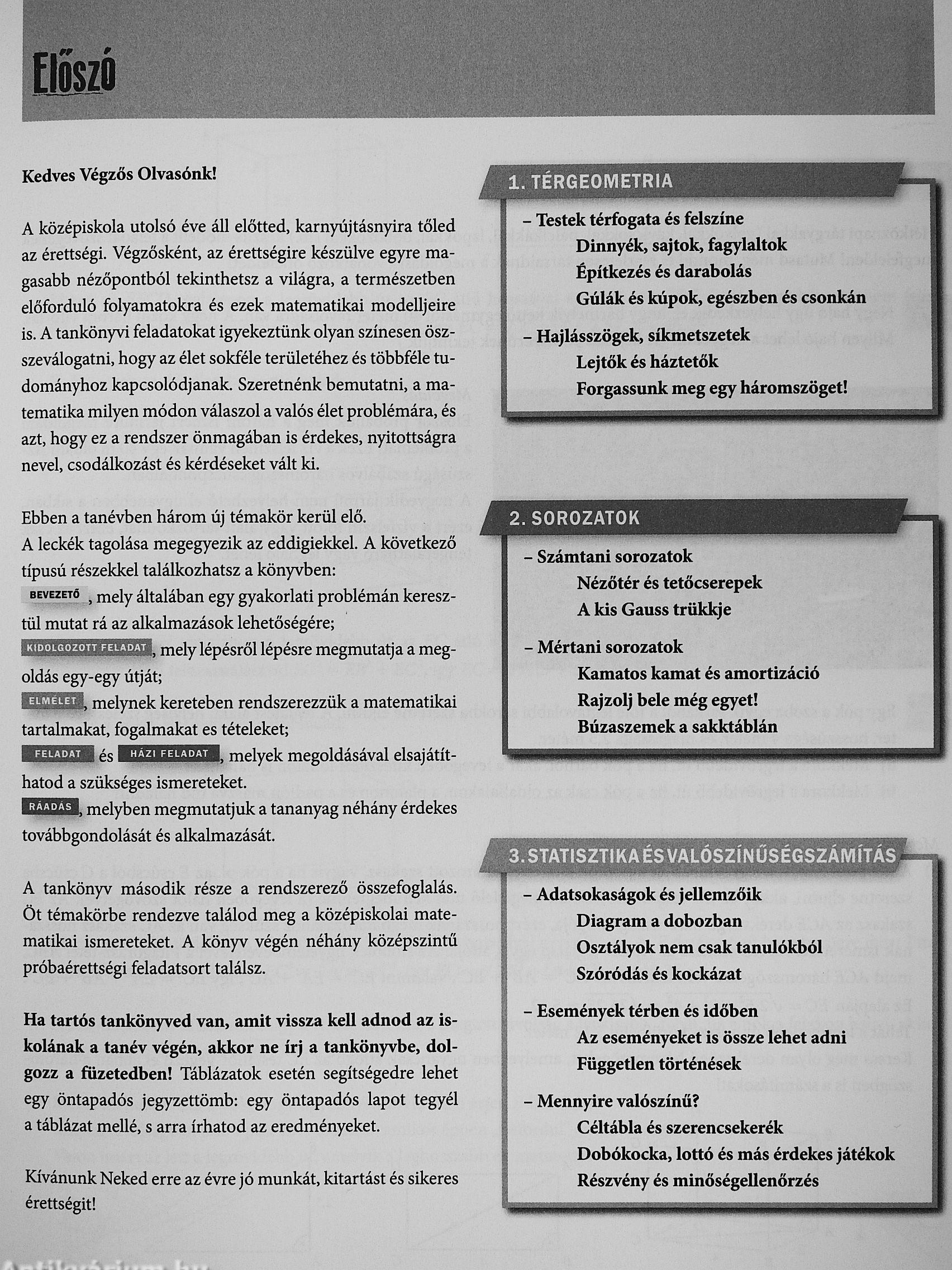 | Megjegyzés: | Színes ábrákkal illusztrálva. Tankönyvi szám: OH-MAT12TA. |