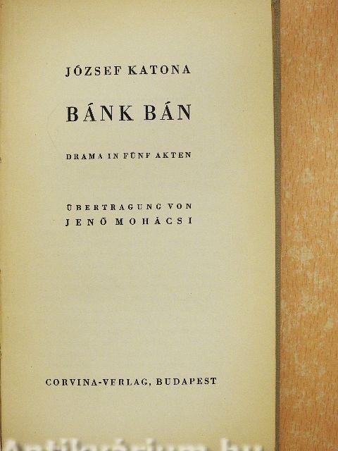 Das bedeutendste Werk der ungarischen Dramenliteratur ist die Tragödie „Bánk Bán" von József Katona, Das Thema ist dem deutschen Publikum nicht unbekannt; Grillparzer verarbeitete es in seinem Trauerspiel „Ein treuer Diener seines Herrn".