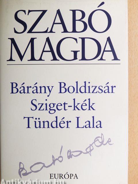 Nekem csak ilyen ajándékaim vannak, fogadják szívesen: aki arca a szöveg mögül visszanéz, sose lett író, mindenét, ami kevese a világ tárgyai vagy szellemi adottságai közül a sajátja volt, odaajándékozta a gyermekének. Ha dedikálok, szülők nevetnek rám, akik Bárány Boldizsáron nőttek fel, az állatbarátok szeretettel küldik üdvözletüket a nyilván otthonomban élő Kandúrkának, sose volt bátorságom megmondani, hogy Kandúrka Jézus gyermekszobájában szolgál, s ahogy annak idején Móra Ferenctől megtanultan, alighanem Mária tölt neki reggel tejet. El ne áruljanak, hogy macska helyett egy gazdáját vesztett és egy pocsolyából ájultan kiszedett, most már a legszebb vendégszékemen szunnyadó kutya jelzi otthonomban a Sziget paradicsomi egységét, a panaszkodni nem a mi módunkon tudó, nélkülünk tökéletesen kiszolgáltatott állatok meseszigetbeli világát. Jablonczay Lenke nagyon csodálkozott, mikor a sírja fölé hajolva azt mondtam, három regényedet készítettem elő kiadásra. Mi mást kérdezhetett volna, mint az egyetlen mindig visszatérő aggodalma jelzését: "Legalább nem nyitott ablaknál gépeltél?"