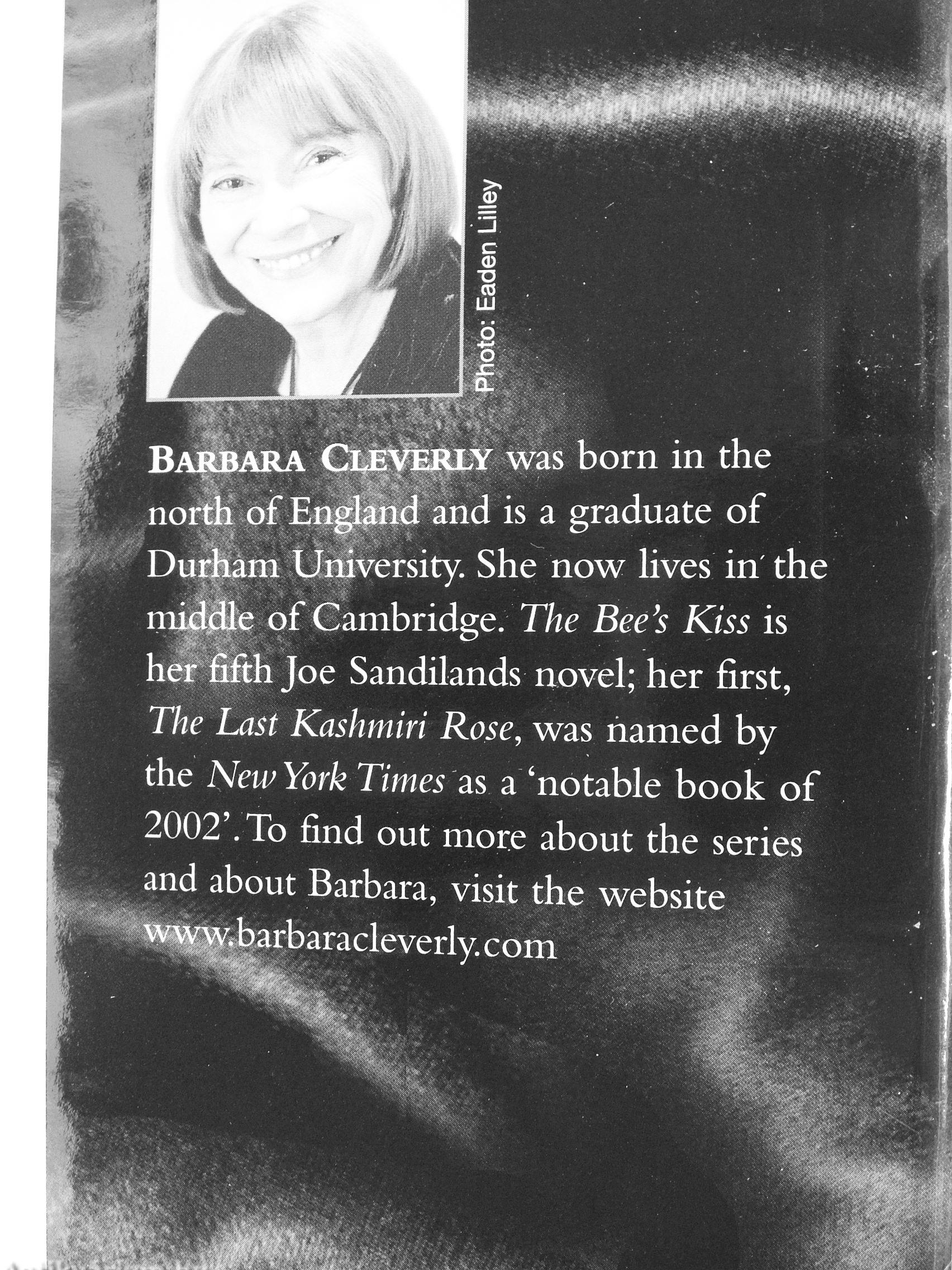 Barbara Cleverly was born in the north of Engi. nd and is a graduate of Durham University. She now lives in the mi lie of Cambridge. The Bee's Kiss is her fifth Joe Sandilands novel; her first, The Last Kashmiri Rose, was named by the NewYork Times 2ls a'notable book of 2002'. To find out more about the series and about Barbara, visit the website w\w.barbaracleverlv com