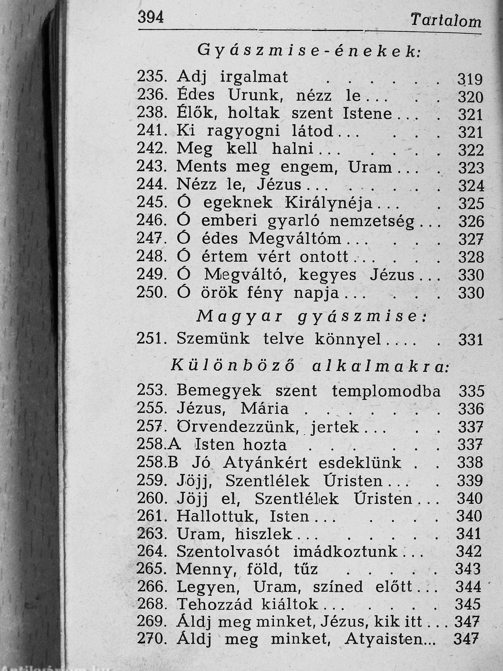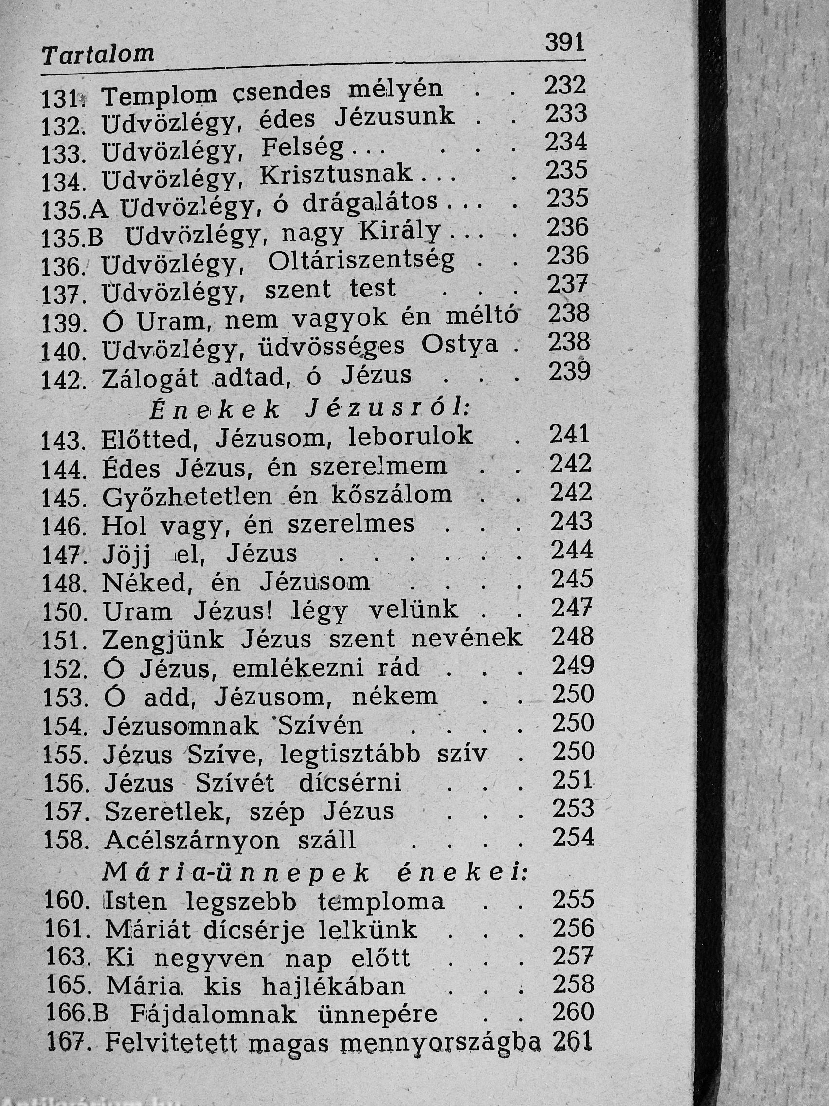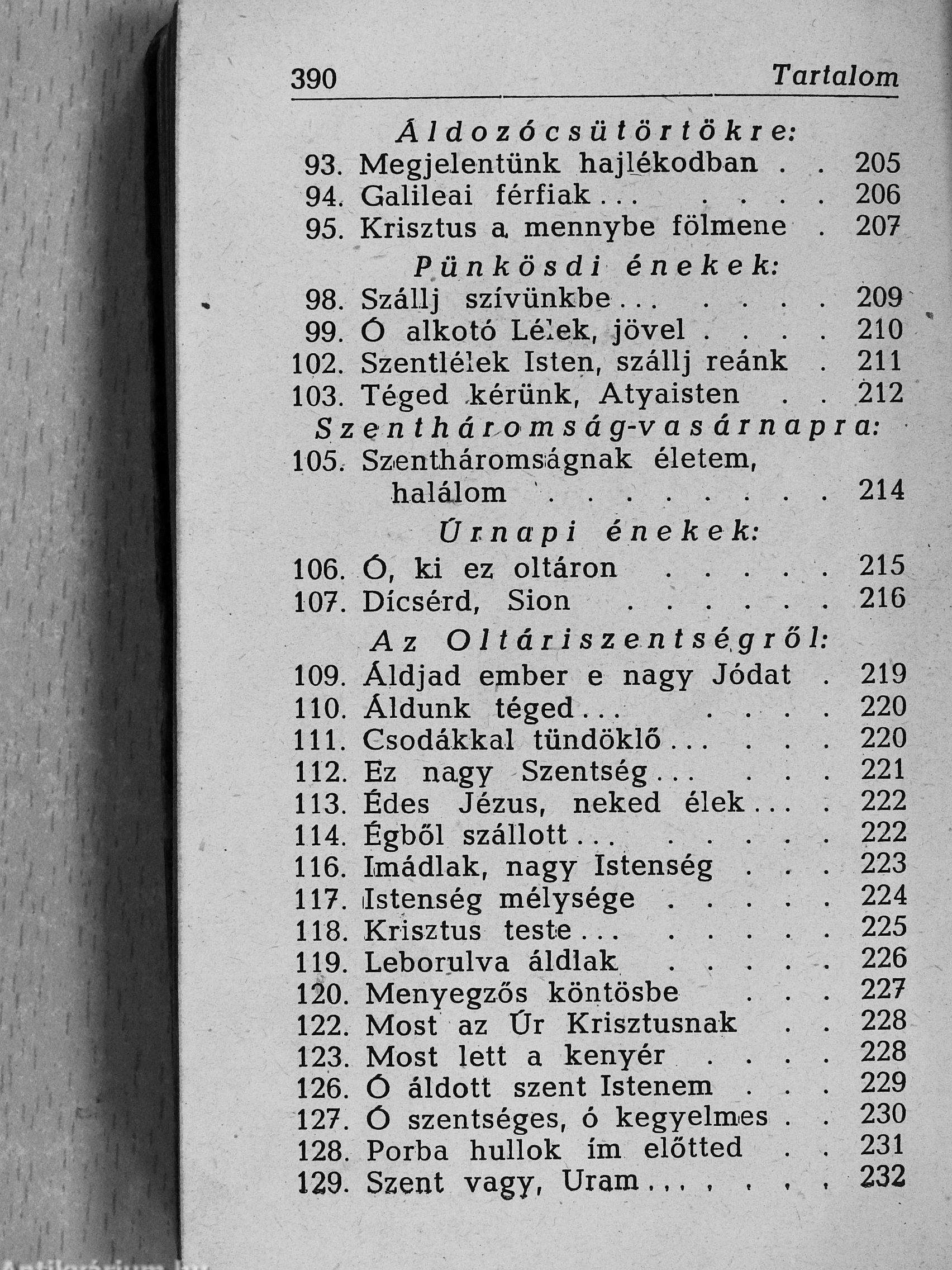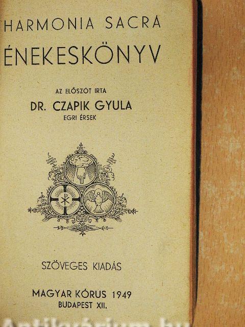 | Megjegyzés: | Az előszót irta Dr. Czapik Gyula egri érsek. Ez a "Harmonia Sacra" énekeskönyv 210 éneket tartalmaz a "Szent vagy, Uram!" énektárból. Ezenfelül még 30 népi gyűjtésből származó és 23 latin, gregorián éneket is ad közre. A könyvet Pál György fejlécei díszítik. Nyomtatta a Korda R. T. nyomda, Budapest. |