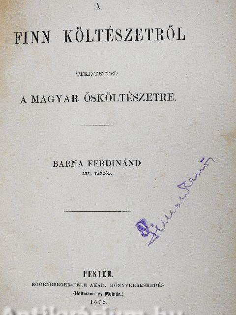 | Megjegyzés: | Írta Barna Ferdinánd, lev. tag. Nyomatott az Athenaeum nyomdában, Pest. |