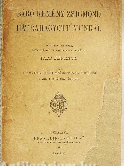 | Megjegyzés: | B. Kemény Zsigmond születésének századik fordulójára kiadja a Kisfaludy-Társaság. A címlap előtt egy fekete-fehér képpel illusztrált. Franklin-Társulat nyomdája nyomása. |