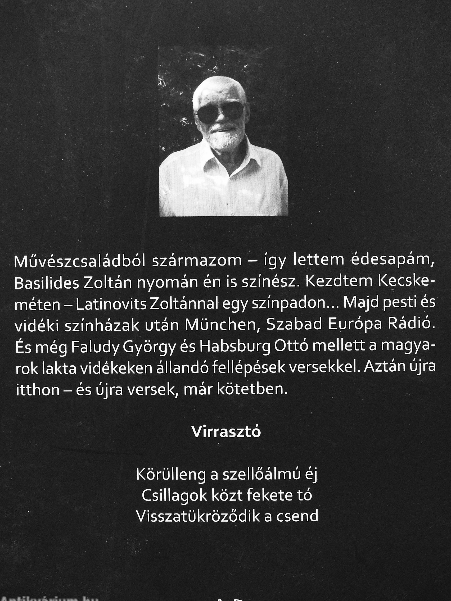 Művészcsaládból származom - így lettem édesapám, Basilides Zoltán nyomán én is színész. Kezdtem Kecskeméten - Latinovits Zoltánnal egy színpadon Majd pesti és vidéki színházak után München, Szabad Európa Rádió. És még Faludy György és Habsburg Ottó mellett a magyarok lakta vidékeken állandó fellépések versekkel. Aztán újra itthon - és újra versek, már kötetben.