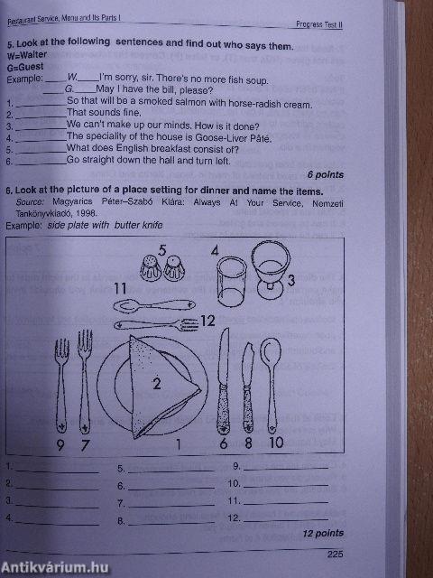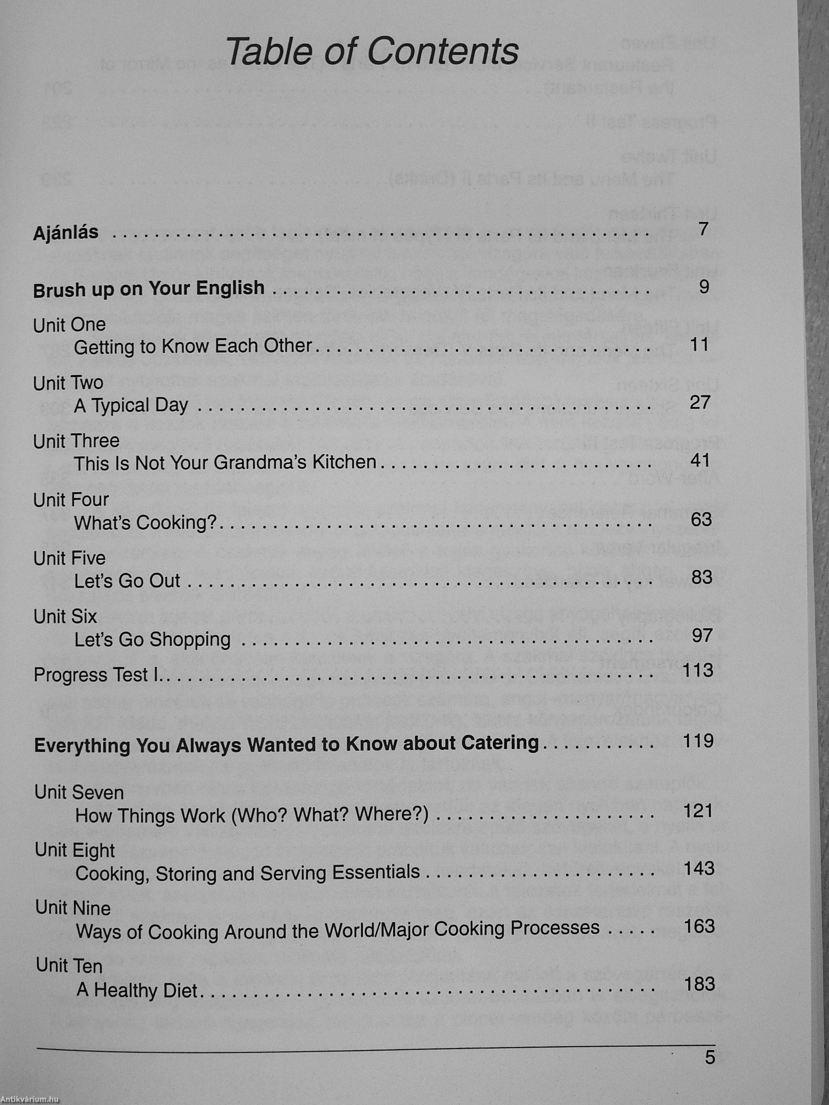 H kulturális Ismereteket Is tartalmazó szövegek bemutatják q kávé, a tészták, a sSr történetét, továbbá szó esik a híres budapesti Gundel étteremről és a nemzetközi ételektől. Hagy-I^tannlát Surópa gyorsétkeztetési fővárosának mutatja be, leíija a francia konyha és borok változatosságát, az .egészséges" olasz konyhát, az indiai t^jellegű konyhát, amely tfikiözi q hinduizmus vegetáriánus szellemiségét. €mlítést tesz az indiai fűszerek különleges ízéről és gyógyhatásáról. Számos magyar és nemzetközi recepten keresztül különböző kultúrákba és étkezési szokásokba nyerhetünk beplllaníást. Hálaadási, karácsonyi és húsvéti menüket Is találhatunk a könyvben, fl .Be Our Suesf című könyv második része az angol nyelv alapjainak az elsajátításán túl bonyolultabb nyelvtani szerkezetekkel Is foglalkozik, ndnt például a feltételes mód vagy a szenvedő szerkezet, fl beszédcentrtkusságon alapuló könyv párbeszédeket és hasznos nyelvi szerkezeteket használ szituációs Játékok előadásához, élethű helyzeíek megteiemtésével. fl közmondások, melyek az ételekkel kapcsolatos szókincset használják fel, szórakoztató pedagógiai eszközként szolgálnak, flz átfogó szószedet, a gyakorló feladatok és a fejlődést ellenőrző tesztek könnyebbé teszik az angol nyelv tanulását ezen a szinten, az Időnként fel-felbukkanó tréfák pedig humort Is visznek a könyvbe.