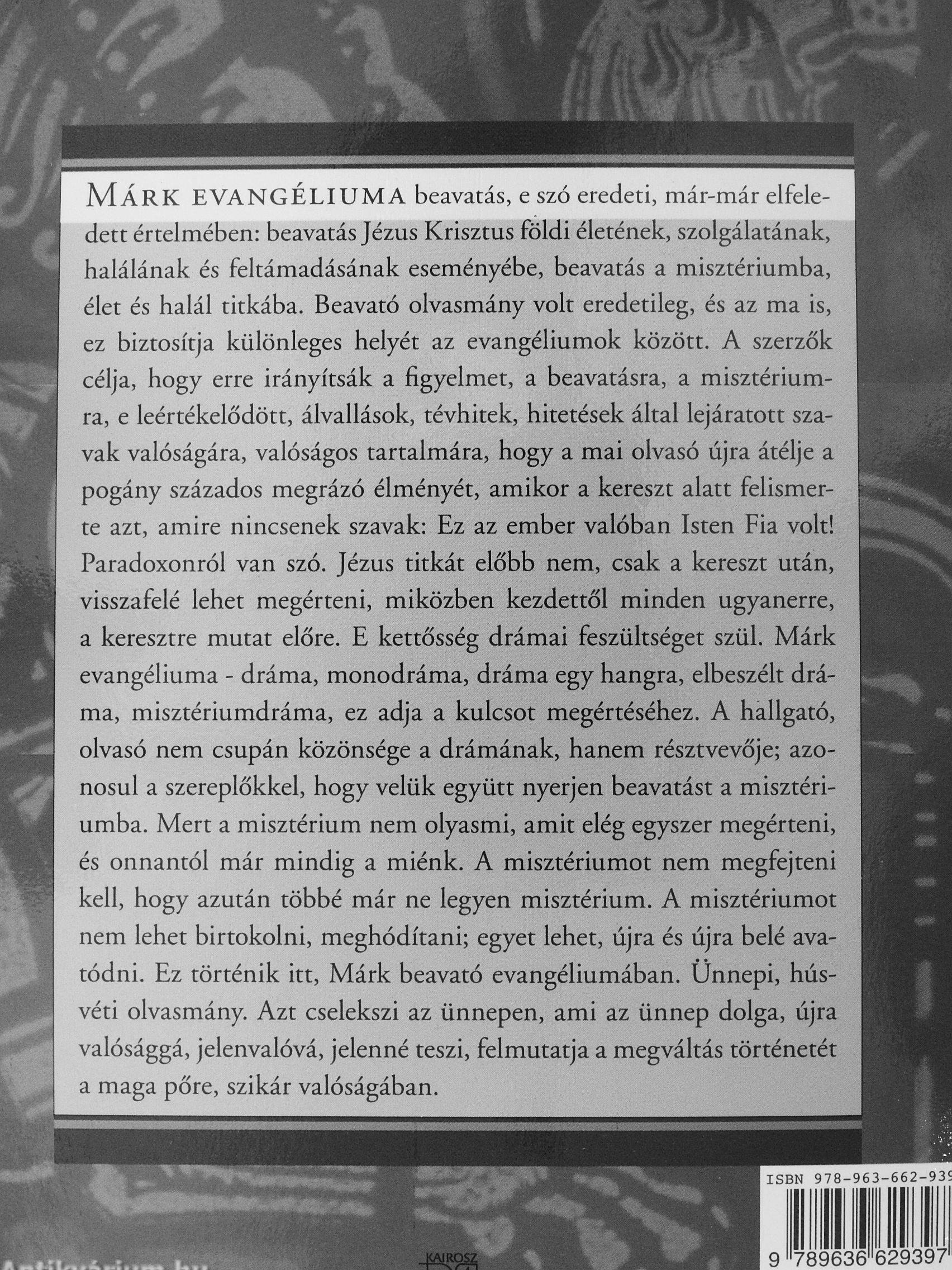 Márk evangéliuma beavatás, e szó eredeti, már-már elfeledett értelmében: beavatás Jézus Krisztus földi életének, szolgálatának, halálának és feltámadásának eseményébe, beavatás a misztériumba, élet és halál titkába. Beavató olvasmány volt eredetileg, és az ma is, ez biztosítja különleges helyét az evangéliumok között. A szerzők célja, hogy erre irányítsák a figyelmet, a beavatásra, a misztériumra, e leértékelődött, álvallások, tévhitek, hitetések által lejáratott szavak valóságára, valóságos tartalmára, hogy a mai olvasó újra átélje a pogány százados megrázó élményét, amikor a kereszt alatt felismerte azt, amire nincsenek szavak: Ez az ember valóban Isten Fia volt! Paradoxonról van szó. Jézus titkát előbb nem, csak a kereszt után, visszafelé lehet megérteni, miközben kezdettől minden ugyanerre, a keresztre mutat előre. E kettősség drámai feszültséget szül. Márk evangéliuma - dráma, monodráma, dráma egy hangra, elbeszélt dráma, misztériumdráma, ez adja a kulcsot megértéséhez. A hallgató, olvasó nem csupán közönsége a drámának, hanem résztvevője; azonosul a szereplőkkel, hogy velük együtt nyerjen beavatást a misztériumba. Mert a misztérium nem olyasmi, amit elég egyszer megérteni, és onnantól már mindig a miénk. A misztériumot nem megfejteni kell, hogy azután többé már ne legyen misztérium. A misztériumot nem lehet birtokolni, meghódítani; egyet lehet, újra és újra belé ava-tódni. Ez történik itt, Márk beavató evangéliumában. Ünnepi, húsvéti olvasmány. Azt cselekszi az ünnepen, ami az ünnep dolga, újra valósággá, jelenvalóvá, jelenné teszi, felmutatja a megváltás történetét a maga pőre, szikár valóságában.