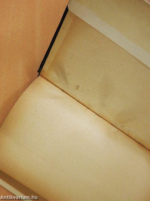 A felső lapélek enyhén foltosak. A kötés megnyílt. Egy lap vágáshibás. Egy lap sarka hiányos.