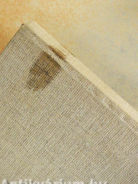 A védőborító elszíneződött, szakadozott, hiányos. A borító és a lapélek foltosak.