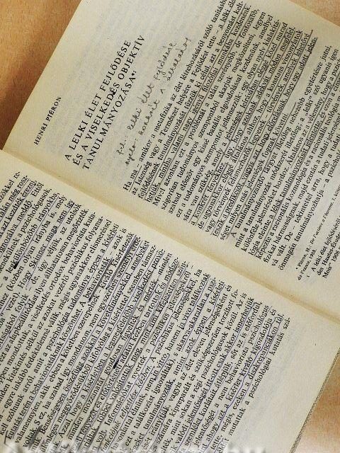 Könyvtári könyv volt. Több lapon aláhúzás és jelölés látható.