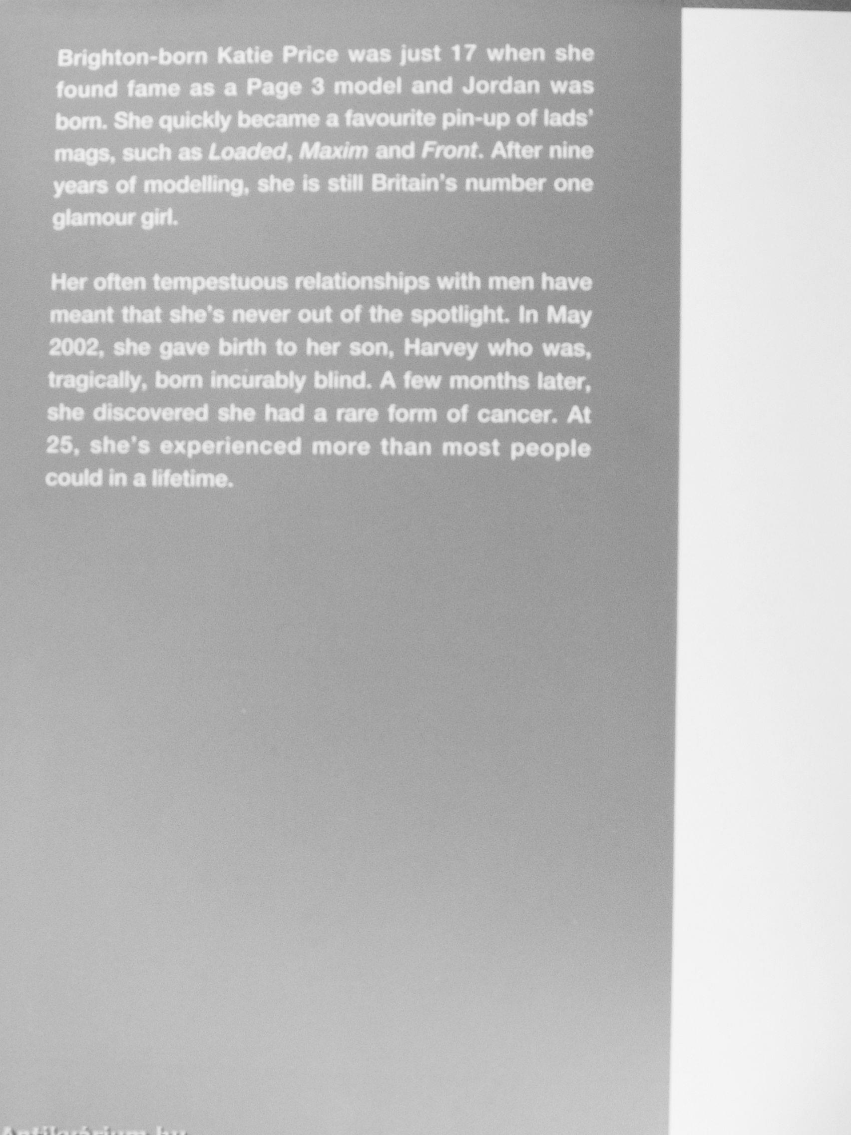Brighton-bom Katie Price was just 17 when she found fame as a Page 3 model and Jordan was bom. She qutcfcly became a favourite pin-up of lads' mags, such as LoacM, Maxim and Front. After nine years of modeiltng, she is stiU Bntain's number one glamour girl ^^^^