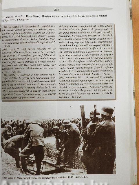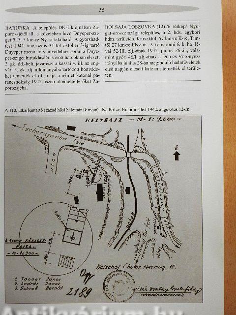 A három kötetesre tervezett sorozat most megjelent első darabja választ ad e sokak által feltett kérdésre. S hogy nem csupán egyszerű veszteség-lajstromot tart a kezében az olvasó, azt a dokumentum-emlékkönyvben megtalálható 147 levélidézet, 196 korabeli temetővázlat és kataszterlap, 9 áttekintő térkép, 88 fénykép, 31 tárgyfotó, valamint 22 művészi tusrajz és akvarell is bizonyítja. Mindez a 308 jelentősebb temetőt ismertető leírás mellett szolgál illusztrációként, ahol az eltemetettekre vonatkozó összesítő adatokon kívül topográfiai meghatározás segíti az olvasót a tájékozódásban, valamint a környékhez kapcsolódó fontosabb hadműveletekről, az ott harcoló - temetéseket végző - alakulatokról is képet kaphat.