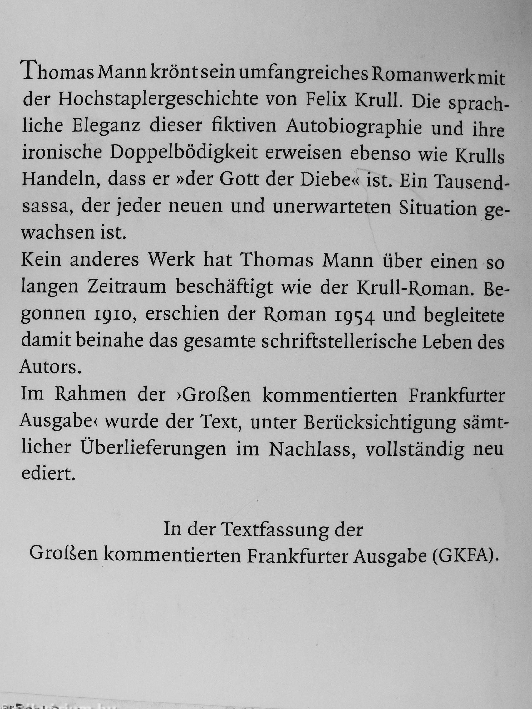 Kein anderes Werk hat Thomas Mann über einen so langen Zeitraum beschäftigt wie der Krull-Roman. Begonnen 1910, erschien der Roman 1954 und begleitete damit beinahe das gesamte schriftstellerische Leben des Autors.