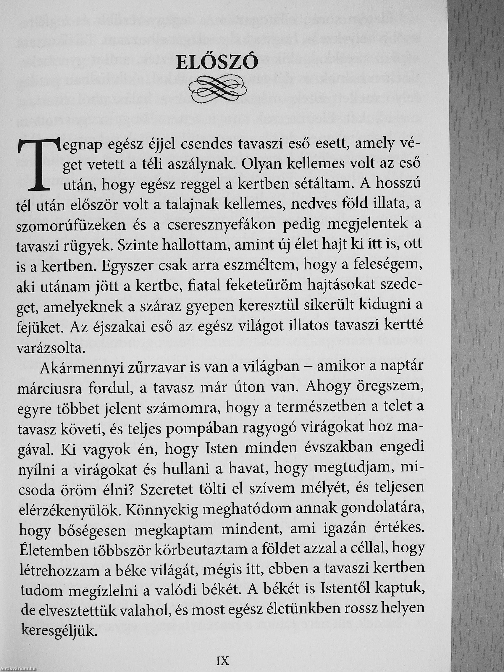 Most is rengeteg szeretet van bennem, amit nem voltam képes átadni. Imával nyújtom át ezt a könyvet a világnak, hogy ebből a szeretetből folyó legyen, amely átitatja az aszály sújtotta tájat és a föld minden szegletébe eljut. Az utóbbi időben egyre több ember akart jobban megismerni engem. Az ő érdekükben visszatekintettem az életemre, és ebben a könyvben feljegyeztem őszinte visszaemlékezéseimet